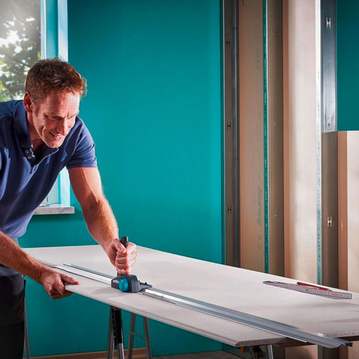 Линеал за гипсокартон Wolfcraft 003 WLF1622 е с дължина 900 мм и представлява незаменим инструмент за улесняване на работата с гипсокартон. Ножът за гипсокартон със съчетаната релса предоставя функционалността, която ви позволява да извършвате разрязвания, насечки и чупене на материала с едно преминаване. Извитото острие на ножа осигурява точно и без назъбвания разрязване на материала от долната му страна, резултатът от което са надеждни и чисти ръбове. Системата със сменяеми ножове позволява лесно и бързо да сменяте остриетата според нуждите на вашата работа. Освен това, ако се налага да извършвате по-дълги разрези, на разположение е и удължителната релса (арт. № 4019000), която позволява работа с гипсокартон до дължина 1.90 м и осигурява точни и прави отрезни ръбове.