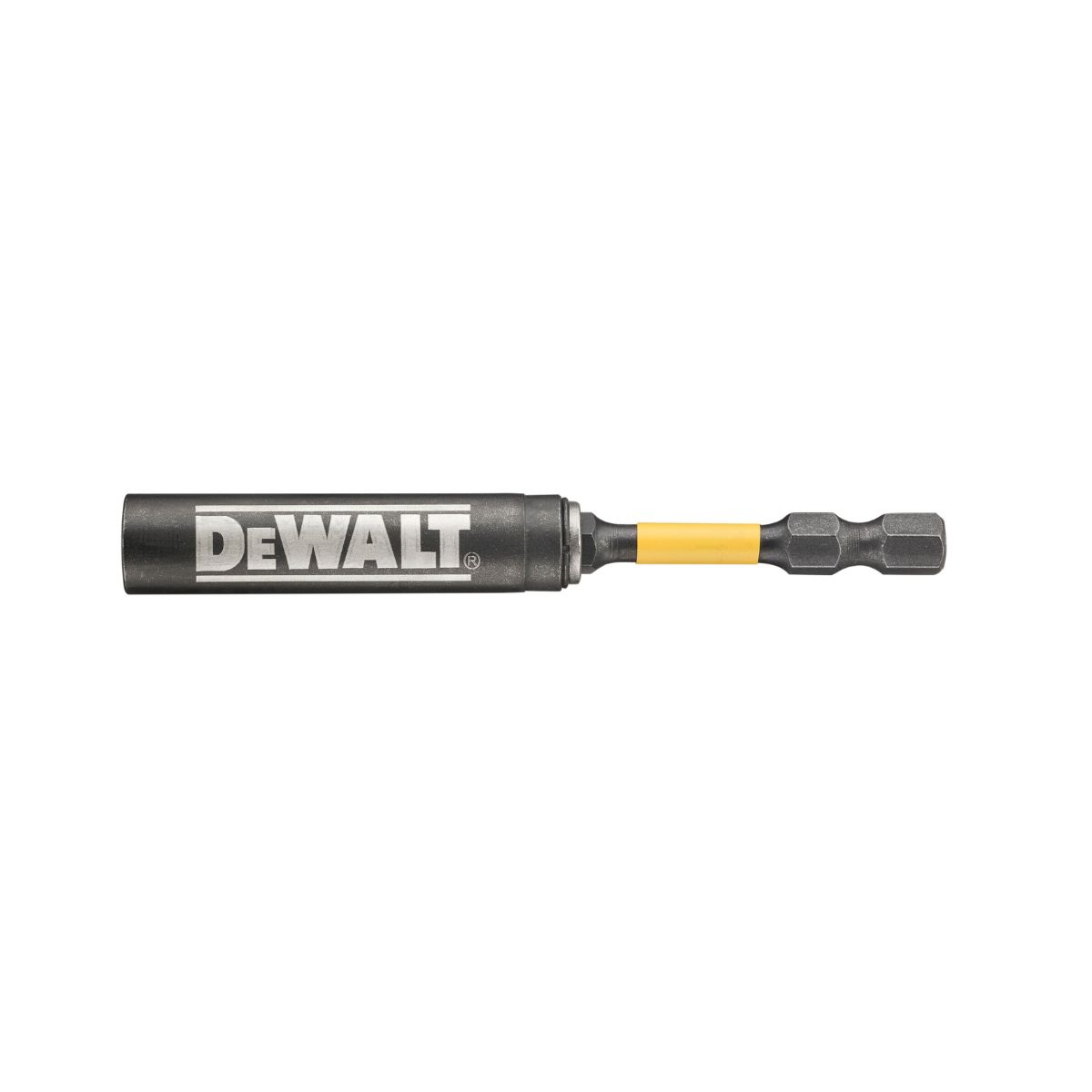 Магнитен държач за битове DeWALT DT7523 е висококачествен инструмент, подходящ за ударни накрайници. С дължина от 90 мм и захват 1/4″, той разполага със силен магнит, осигуряващ удобен и сигурен захват. Изработен от висок клас неръждаема стомана, той гарантира висока издръжливост и дълъг живот. Предпазва 25 мм битове при пиков въртящ момент и е подходящ за използване с ударни инструменти.