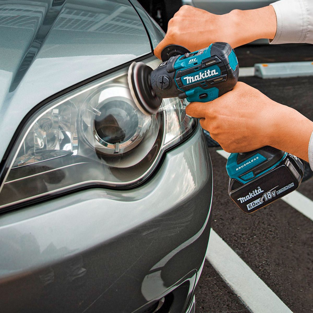 Makita DPV300Z Акумулаторна полирмашина е мощен инструмент, който е оборудван с плот, чийто диаметър е 80/50 мм, а подложката е самозалепваща. Предлага възможност за регулиране на скоростта, като оборотите на празен ход могат да бъдат настроени в диапазона от 0 до 2800/9500 оборота в минута. Ергономичният дизайн на полиращата машина осигурява удобност при работа с инструмента. Намаленото разстояние между шлифовъчната опора и корпуса на редуктора допълнително подобрява удобството при работа. С функция против рестарт, която предотвратява автоматичното стартиране след прекъсване на захранването. Също така, разполага с превключвател за заключване, който позволява заключване на инструмента включен или изключен, осигурявайки по-голяма безопасност при работа. Мекият ергономичен захват на тази полирмашина осигурява удобство и контрол при работа с нея.