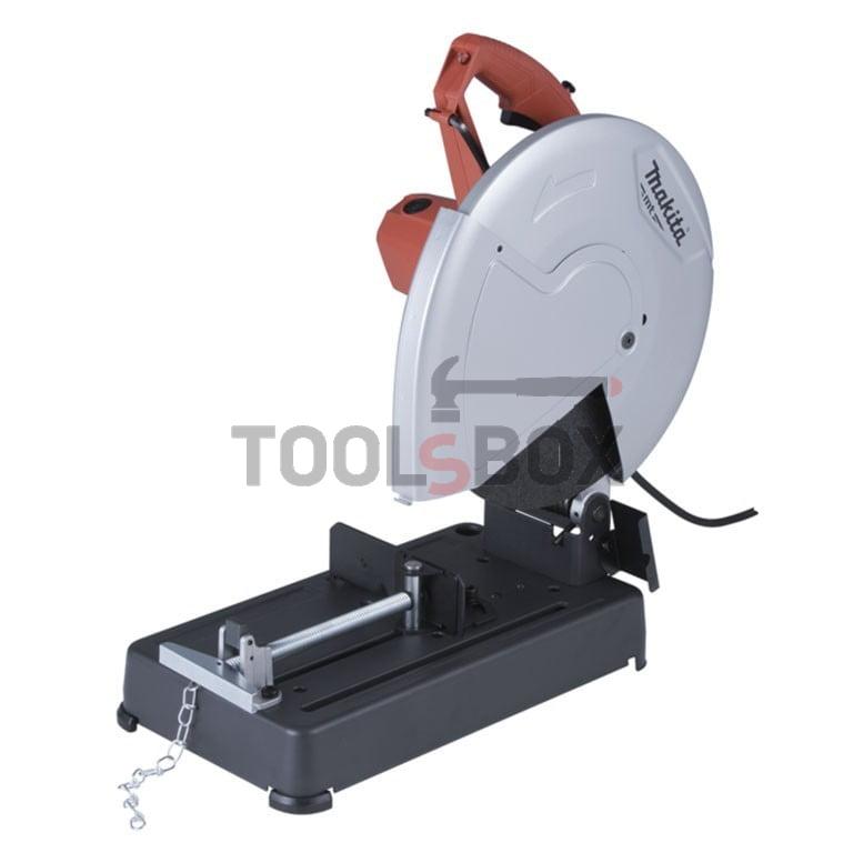 MAKITA MT M2401 Настолна отрезна машина с абразивен диск за рязане на стомана, неметали, желязо и чугунени профили. Застопоряване на шпиндела за бърза смяна на абразивния диск. Винтова стяга със системама за бързо застопоряване и безстепенна настройка от 15° до 45°. Висока сигурност посредством падащ от двете страни предпазен кожух и фронтална защита.