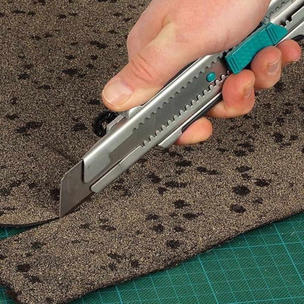 Метален макетен нож Wolfcraft 065 WLF 102 е специално разработен с внимание към детайлите, съчетавайки ергономичност, автоматизация и издръжливост. Той е идеален за рязане на тежки материали като покривен найлон, гипскартон, дебел картон или хартия. Ергономичният метален корпус е създаден с мека зона, която осигурява безопасно боравене и комфорт при прехвърлянето на силата по време на работа. Застопоряващата функция Autolock осигурява автоматично застопоряване и смяна на острието. Фиксиращият бутон допълнително осигурява застопоряване на острието в стабилно положение във водача, което подобрява точността и сигурността на работата. Интегрираният зареждащ се пълнител за остриета предлага практично решение за дългосрочна употреба.