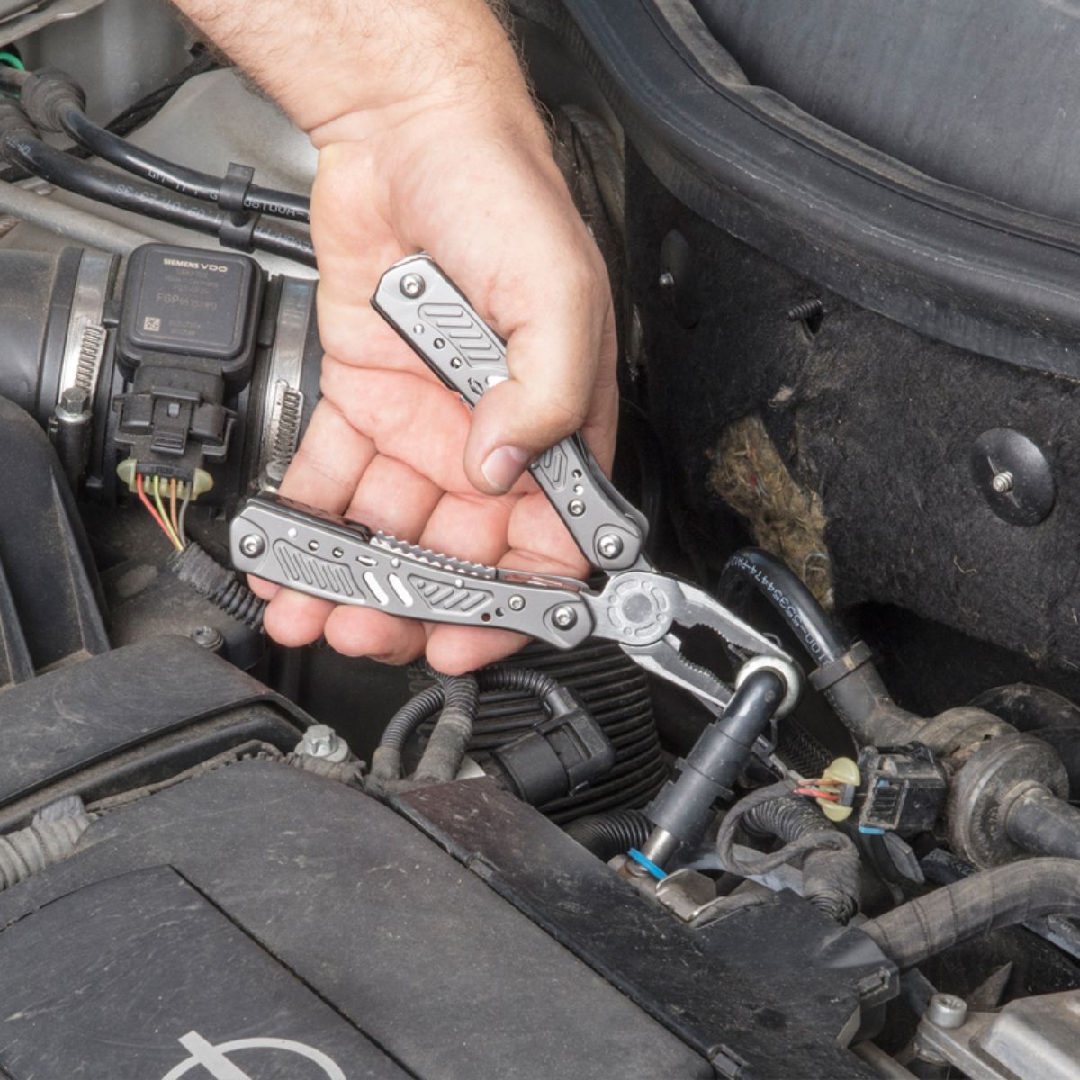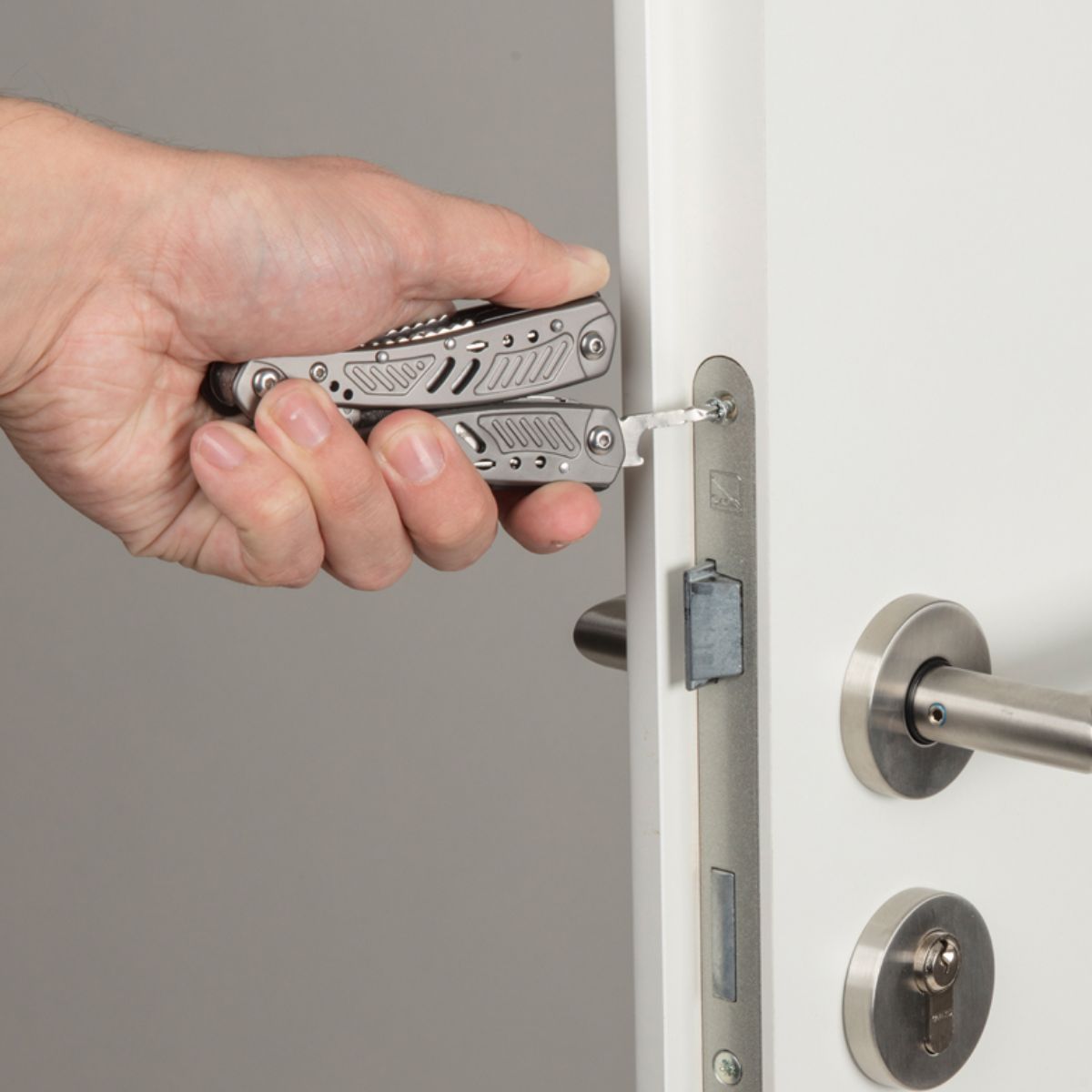 Многофункционални клещи Wolfcraft 094 WLF2974 е невероятно удобен и компактен инструмент, който обединява 13 различни функции в едно устройство. Този интелигентен инструмент е идеален спътник за множество ситуации – от къмпинг и туризъм до хобита и занаятчийски дейности. Без значение дали сте на открито, пътувате или работите върху проекти вкъщи, този инструмент ви осигурява голяма гъвкавост и готовност за действие. С лекота можете да разгъвате инструментите и да ги закрепите на място чрез сигурния механизъм за застопоряване. Предвид предпазния механизъм, вие сте предпазени от случайни затваряния. Доставя се в удобен найлонов джоб, за лесно съхранение и транспортиране. Също така, благодарение на скобата за колан, вие може да го закрепите към колана си за лесен и бърз достъп.