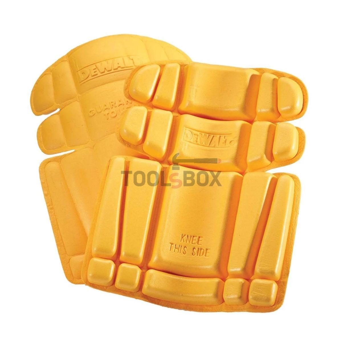 Наколенки DEWALT Knee Pads са изработени от100% полиетилен за по-добро прилепване и комфорт при работа. Предназначени за индустриална употреба. Подходящи са за използване при равни повърхности, не осигуряват защита срещу пробиване от остри предмети. Подходящи за всякакви работни панталони DeWalt. Ергономичен и удобен дизайн. Оптимално прилягане и комфорт. Те са с универсален размер, който пасва на всяко коляно.