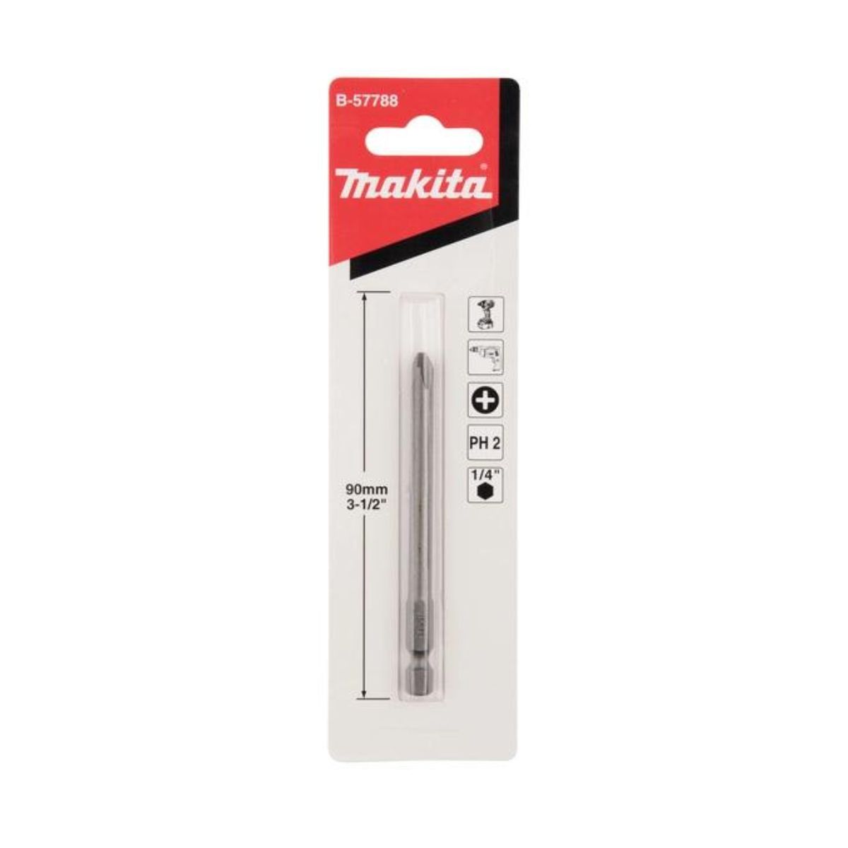 Бит Makita B-57788 e висококачествен накрайник с дължина от 90 мм. С 1/4″ – шестостен захват и е подходящ за използване с отвертки и винтоверти. Бита е с профил PH2 и е оборудван с магнит за по-лесно закрепване.