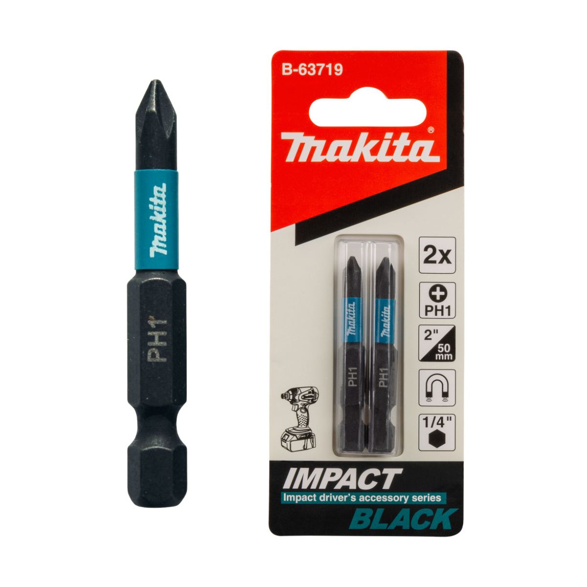 Накрайник – бит Makita B-63719 е накрайник, покрит с манганов фосфат, който осигурява устойчивост на износване, предотвратява ръжда и корозия и удължава живота на накрайника. Този ударен черен накрайник абсорбира силни удари при завинтване на винтове или при прилагане на високо налягане върху повърхността, като същевременно зоната на усукване противодейства на високите пикове на въртящ момент. Водачът на винта помага за перфектната позиция на винта при забиване в материала, което го прави идеален за монтаж на панти. Ударните черни накрайници са подходящи за различни приложения, включително завинтване, изработка на шкафове, дограма, сглобяване, фиксиране и други.Накрайникът е с дължина 50 мм и присъединяване от 1/4″.