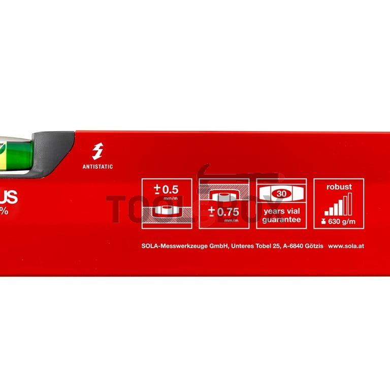 Алуминиев нивелир модел BIG X 3. Алуминиев тръбен с червено покритие, тегло на профила около 630 гр./ лин.метър, размер около 50 x 25 мм, 1 хоризонтална либела, 2 вертикални либели. Мax. отклонение в стандартна позиция: 0,5 мм/м (0,029°), в обърнато положение: 0.75 мм/м (0,043°). Предимства: електронно контролирана либела, нечуплива либела от акрилно стъкло. Хоризонтална либела с увеличителна леща и светещо покритие, омекотяващи удара капачки. Приложение: при строителни и зидарски работи, при полагане на подови покрития, изграждане на инсталации.
