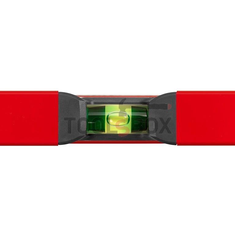 Алуминиев нивелир модел BIG X. Алуминиев тръбен с червено покритие, тегло на профила около 630 гр./ лин.метър, размер около 50 x 25 мм, 1 хоризонтална либела, 1 вертикална либела. Мax. отклонение в стандартна позиция: 0,5 мм/м (0,029°), в обърнато положение: 0.75 мм/м (0,043°). Предимства: електронно контролирана либела, нечуплива либела от акрилно стъкло. Хоризонтална либела с увеличителна леща и светещо покритие, омекотяващи удара капачки. Приложение: при строителни и зидарски работи, при полагане на подови покрития, изграждане на инсталации.