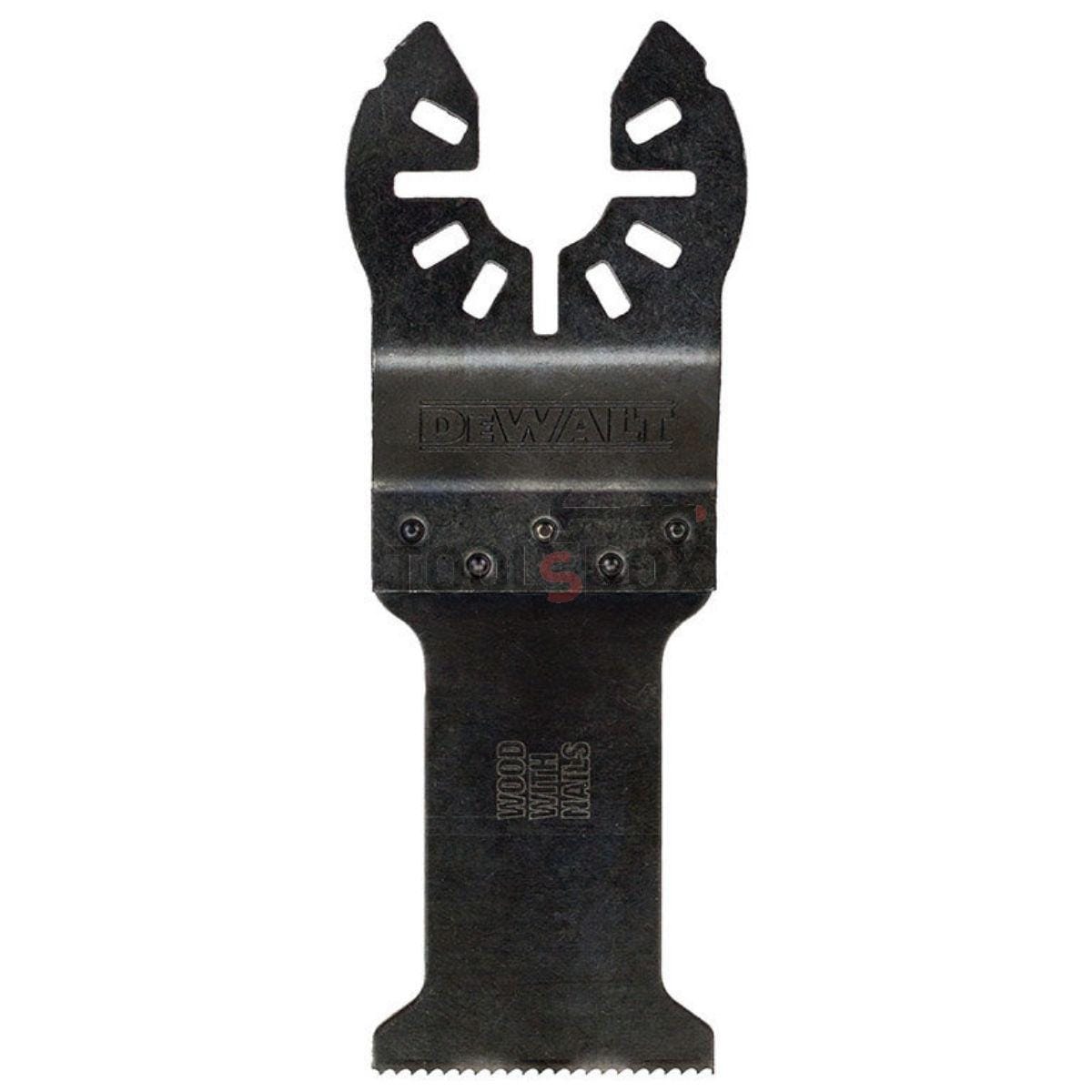 Ножът DT20701 на DeWalt се използва като накрайник за осцилиращи мултифункционални инструменти за рязане на дърво и метал. Той е с биметална конструкция за по-дълготрайна острота на зъбците. Позволява добра производителност при рязане на дърво и също така издържа на повреди при среща с вграден метал. Дълбочината на рязане от 43 мм увеличава максимално зоните, в които инструментът и аксесоарът могат да се използват.