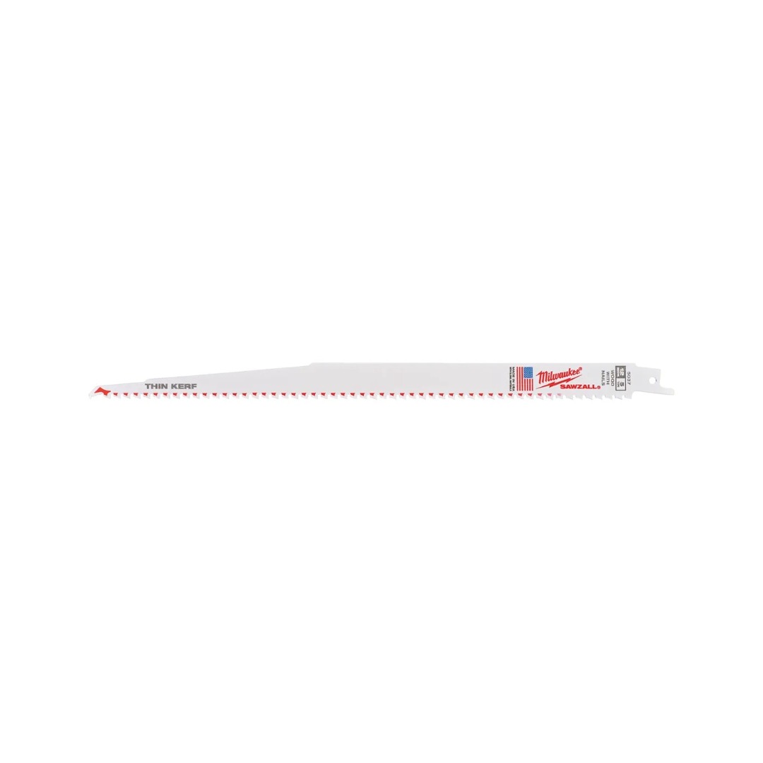 Нож за саблен трион Milwaukee 48016037 за рязане на дърво с пирони е създаден за висока издръжливост и бърза работа при тежки приложения. Острието разполага с тяло с дебелина 1.27 мм и височина 19 мм, което осигурява отлична здравина, стабилност и дълъг експлоатационен живот, дори при рязане на дърво с вградени метални елементи. Агресивната геометрия на зъбите с 5 TPI позволява по-голямо отнемане на материал при всеки ход и значително по-бързо рязане. Специалният FANG TIP™ връх улеснява потапящите разрези и прави ножа изключително подходящ за работа в труднодостъпни зони, а удълженият скос допълнително подпомага контрола при такива операции. Технологията NAIL GUARD™ защитава зъбите при контакт с пирони, като значително увеличава живота на острието. Би-металната конструкция осигурява устойчивост на счупване и позволява гъвкаво огъване без риск от повреда, което прави ножа надежден избор за професионална и интензивна употреба.