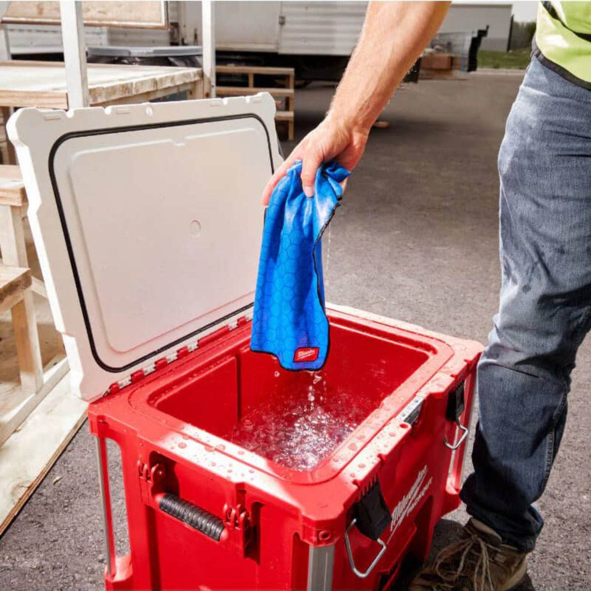 Охлаждаща микрофибърна кърпа Milwaukee 4932498076 осигурява дълготраен охлаждащ ефект до 4 часа, което спомага за удължаване на продуктивността и облекчаване на заболявания, свързани с топлината. За активиране на охлаждащия ефект е необходимо да накиснете кърпата във вода и да изцедите излишното количество, като процесът на охлаждане започва в рамките на 30 секунди. Когато охлаждащият ефект отслабне, просто нанесете вода отново, за да го активирате. Кърпата блокира вредните UV лъчи и е изработена от изключително удобен материал с издръжлива лента по ръба за по-голямо удобство при носене. Подходяща е за машинно пране и е сертифицирана с UPF 50+, осигуряваща висока защита от слънцето, и отговаря на стандарт EN 13758-1 за безопасност и ефективност.