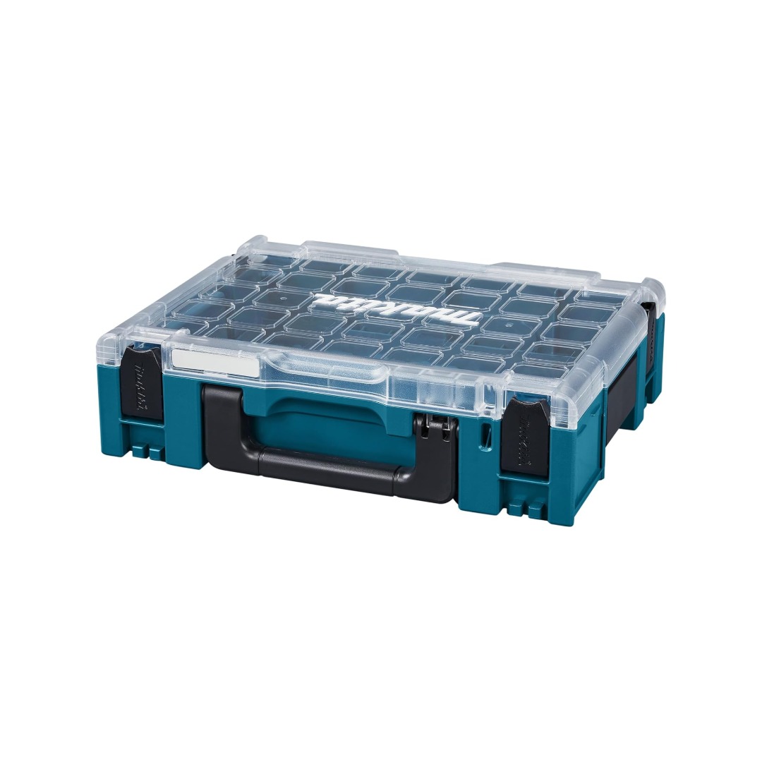 Органайзер без кутии Makita 191X84-4 е практично решение за съхранение и пренасяне на инструменти и аксесоари с размери 395 x 295 x 110 мм. Той позволява модулно конфигуриране с пет вида контейнери – 50×50, 50×100, 100×100, 100×150 и 150×150 мм, които улесняват персонализираното подреждане на вашите инструменти. Куфарът разполага с капак със заключване на дръжката, което гарантира сигурност при транспортиране и лесен достъп до съдържанието.