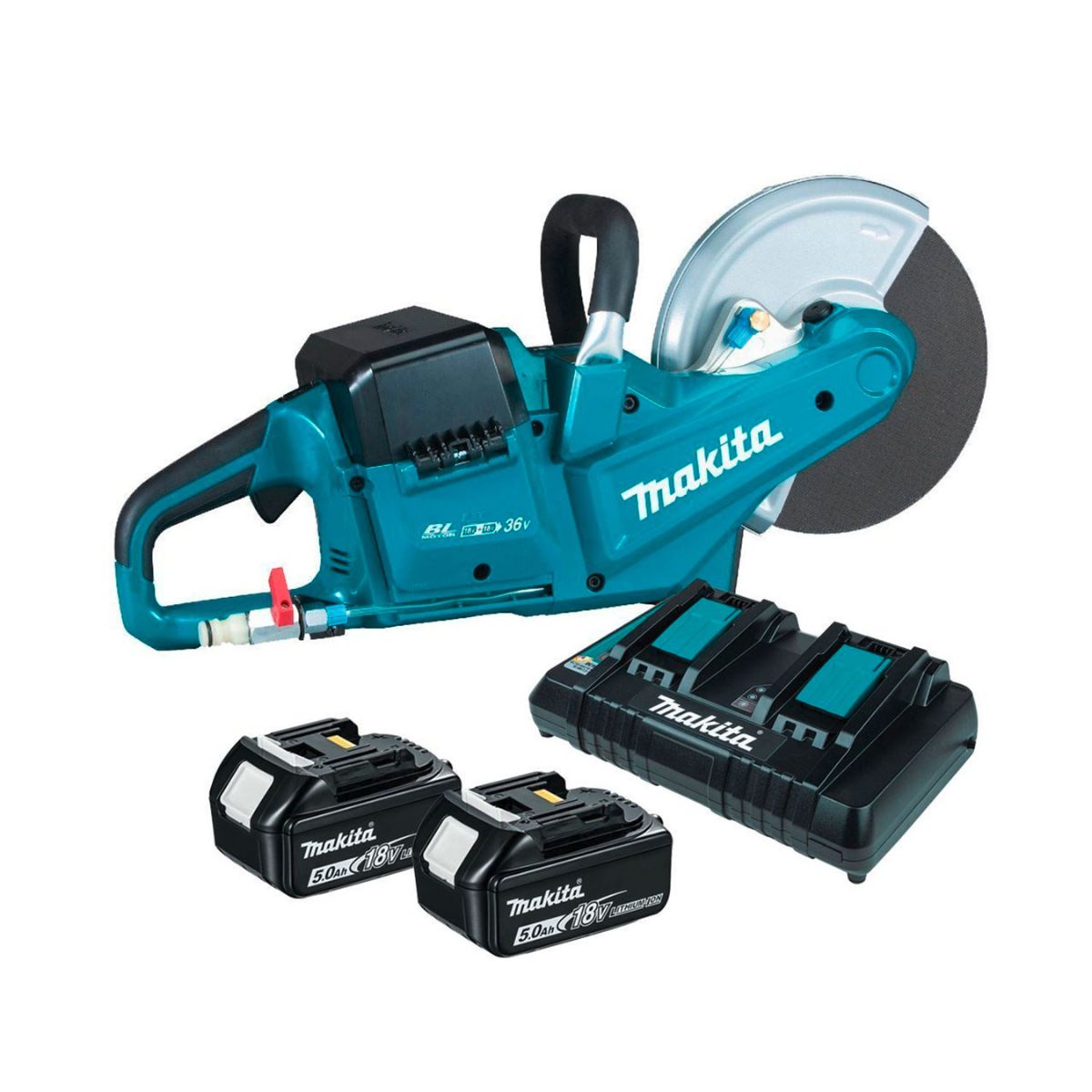 Отрезна машина Makita DCE090T2X1 е със захранващо напрежение 18 + 18V и диаметър на режещия диск 230 мм. Има високоефективен безчетков мотор, система ATF (Active Feedback Sensing), която предпазва оператора при евентуално блокиране на острието, както и система WG за защита от прах и влага. Разполага с плавен старт и електрическа спирачка. Възможност за свързване на водоснабдителна система. Оборотите на празен ход са 6600 об./мин. Машината е подходяща както за сухо, така и за мокро рязане, като капакът предпазва батерията от евентулни пръски вода. Снабдена е със светодиоден индикатор за претоварване.