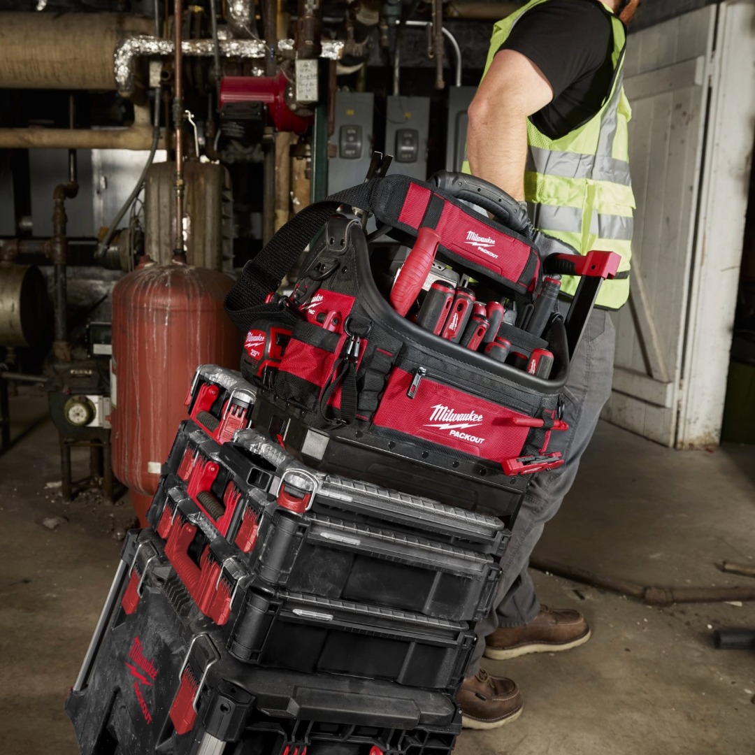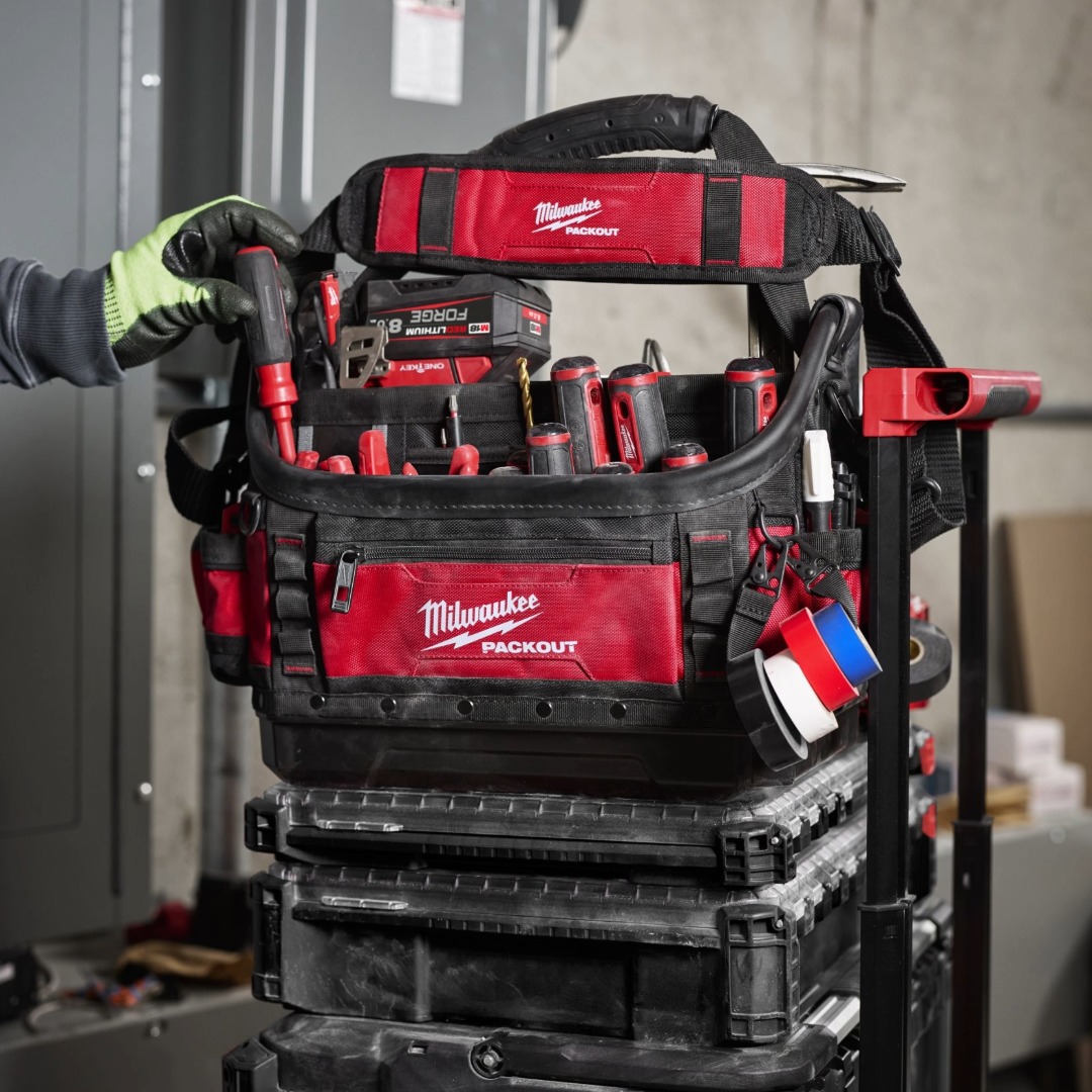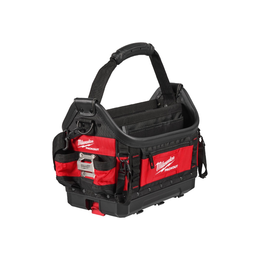 Отворена чанта за инструменти Milwaukee 4932498634 е създадена за професионалисти, които търсят максимална издръжливост и отлична организация на инструментите. Изработена е от високоустойчив балистичен материал 1680D и 1800D с многослойна структура, която повишава здравината и дългия експлоатационен живот. Подсилените ръбове, металните халки и пружини осигуряват надеждност при интензивна ежедневна употреба, а товароносимостта до 22,7 кг позволява пренасяне на тежки инструменти без компромис. Чантата разполага с множество джобове за оптимална подредба, специален държач за изолирбанд за бърз достъп, удобна презрамка за рамо и ергономична дръжка за носене. Формованата основа PACKOUT™ предпазва съдържанието от влага, прах и строителни отпадъци. Предлага се в размери 38 см и е напълно съвместима с модулната система за съхранение Milwaukee PACKOUT™, което я прави практично и надеждно решение за всяка работна площадка.