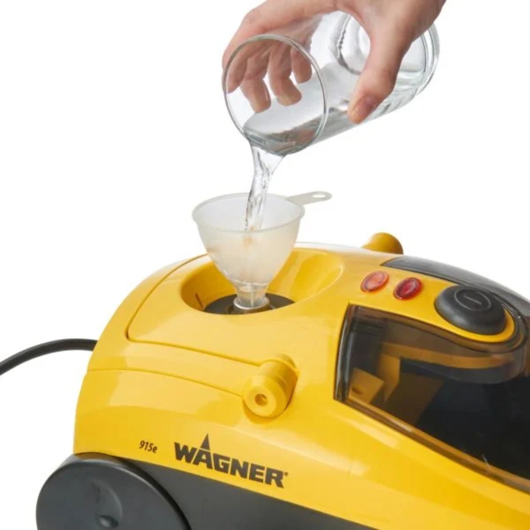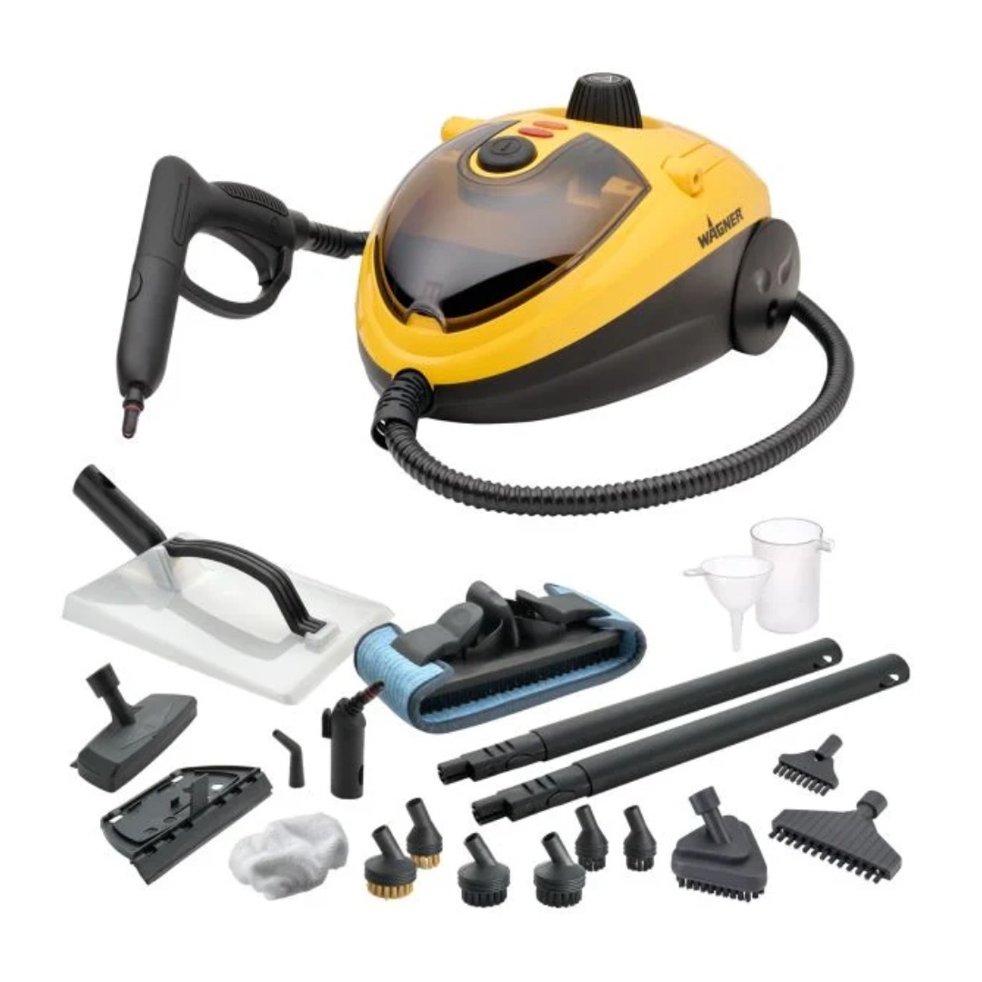Парочистачка WAGNER Power Steamer 915E, 1500 W е универсално решение за ефективно почистване без използване на химикали, подходящо за различни повърхности в дома. С резервоар с вместимост 1120 мл и работна температура до 100°C, уредът осигурява надеждно почистване и до 40 минути непрекъсната работа. В комплекта са включени 18 аксесоара, които позволяват обработка на разнообразни зони, включително приставка за лесно премахване на тапети без препарати. Благодарение на 2.4-метровия маркуч, почистването на труднодостъпни места става по-лесно и удобно. Моделът разполага с практично отделение за съхранение на накрайниците и вградена дръжка за по-лесно пренасяне. Подходящ е за домове с деца, домашни любимци или хора с чувствителност към почистващи препарати, като за работа е необходимо използването на дестилирана вода.