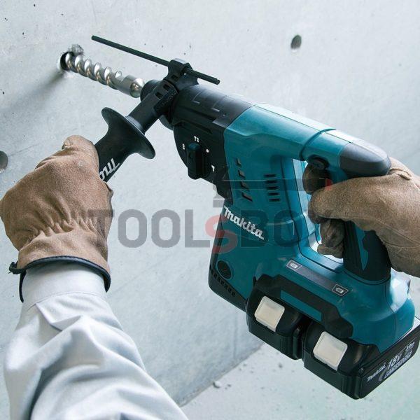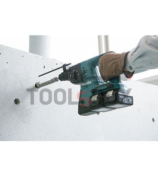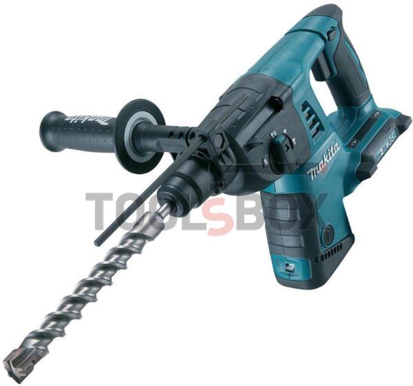 Изключително висока производителност. Захранване от две свързани последователно 18 V литиево-йонни батерии. 3 режима на работа: пробиване без удар, ударно пробиване, къртене. Предпазен съединител. LED работна лампа с предварително включване и отложено изключване. Подобрена защита от прах и пръски вода. Вибрационно поглъщаща ръкохватка за удобна работа. Ергономична конструкция за: предаване на мощен натиск, осигуряване на сигурен и удобен захват.
