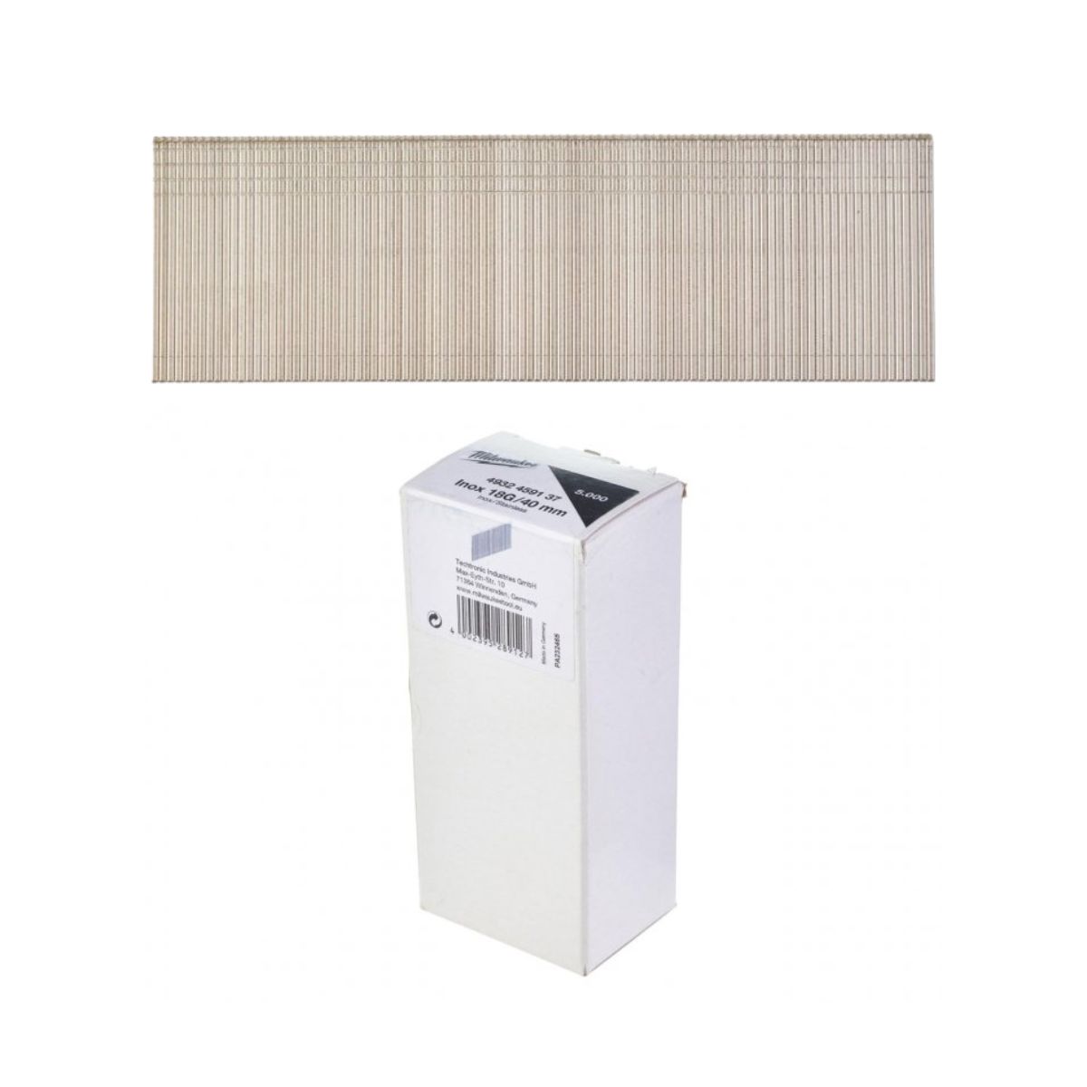 Пирони за такер Milwaukee 18G са изработени от неръждаема стомана, гарантирайки добър захват и високо качество. Те са с дължина 40 мм и са подходящи за такера на Milwaukee M18FN18GS. Предлагат се в опаковка от 5 000 бр и са от тип 18G.