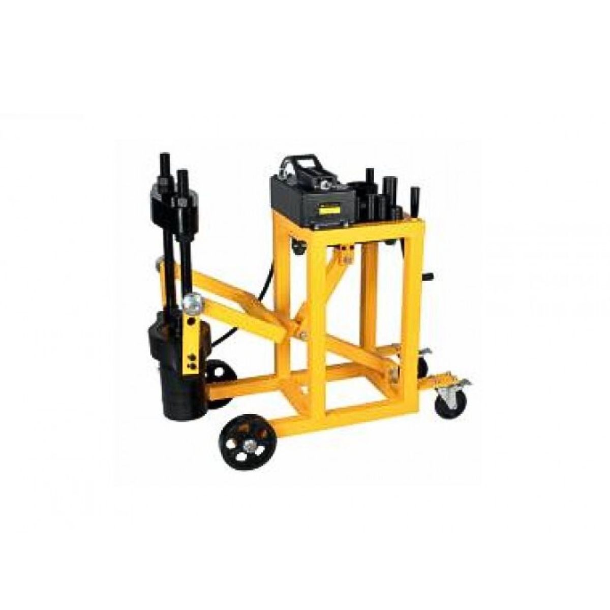Пневмо-хидравлична преса JCB B1339 се отличава с висока товароподемност от 75 тона и е идеална за бързо набиване и изтласкване на шенкелни болтове на цилиндрични и конични придържащи елементи. Специалната конструкция на пресата позволява работа без необходимостта от демонтаж на оста. Блокът на пресата може да се върти на 360° с възможност за накланяне, въртене и регулиране на височината, осигурявайки удобство при работа с труднодостъпни конструктивни детайли. Пресата включва пневматична хидравлична крачна помпа със скоростен подем, хидравличен цилиндър, както и най-разпространените втулки и притискащи елементи. С нейната лесна и сигурна употреба, специална и компактна конструкция, както и голяма икономия на разходи и време, пресата за шенкелни болтове JCB-B1339 е незаменим помощник за професионалните сервизни работници и механици.