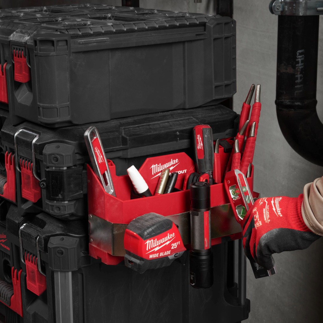 Подвижен органайзер Milwaukee 4932498644 е практично решение за подредба и лесен достъп до инструменти по време на работа и транспорт. Моделът се закрепва към PACKOUT™ релсите в двете възможни ориентации, което осигурява гъвкавост при конфигуриране на работното пространство. Удароустойчивият корпус е проектиран за интензивна професионална употреба и защитава съдържанието при тежки условия. Органайзерът разполага с регулируеми разделители за по-добра организация, както и с голяма щипка за колан, позволяваща съхранение на няколко инструмента едновременно. Конструкцията е подходяща за инструменти с дължина до 25 см по време на пренасяне. Като част от модулната система Milwaukee PACKOUT™, той се интегрира безпроблемно с останалите елементи от серията и предлага надеждно, подредено и ефективно решение за съхранение.