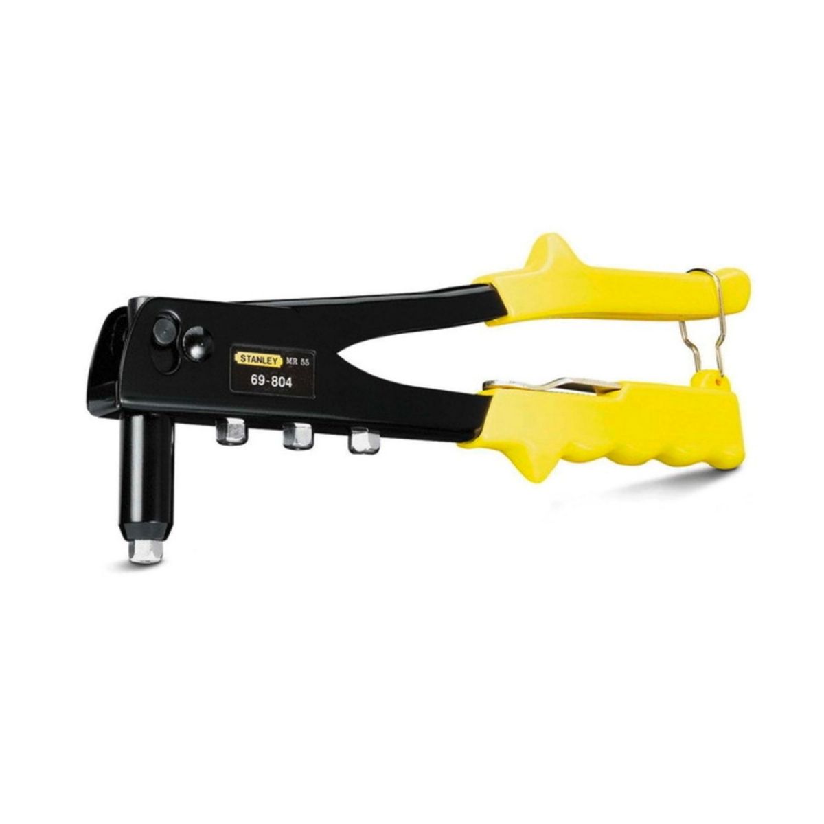 Попнитачка STANLEY 0-69-804 е ръчен инструмент, предназначен за хоби и полупрофесионални приложения, отличаващ се със здрав стоманен корпус и надеждна работа при монтаж на попнитове с диаметри 2, 3, 4 и 5 мм. Конструкцията ѝ е проектирана за дълготрайна употреба, като включва ергономични ръкохватки с покритие, адаптирано към формата на ръката, което осигурява удобство и по-добър контрол по време на работа. Смяната на накрайниците се извършва лесно с помощта на включения специален ключ, като всеки накрайник е предназначен за съответния размер нит. За допълнителна безопасност и улеснение при съхранение и транспортиране, ръкохватката разполага със заключващ механизъм, който предотвратява нежелано разтваряне на инструмента. STANLEY MR55 е надежден избор за задачи по сглобяване и ремонт, където се изисква стабилно нитово съединение.