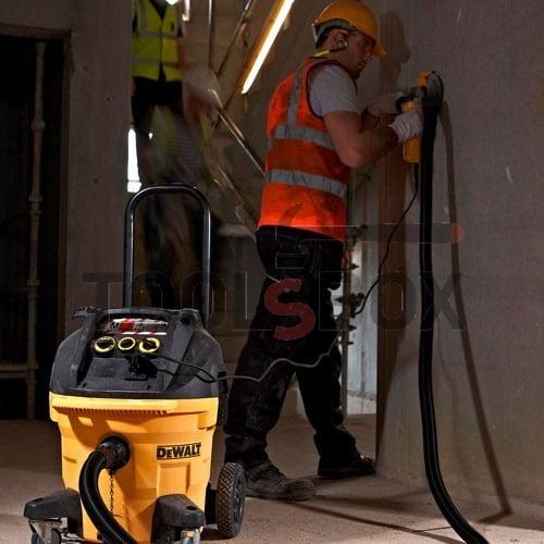 Прахосмукачка Dewalt модел DWV902M-QS. Професионална прахосмукачка с автоматично превключване м/у мокър и сух режим на работа. Отговаря на прах клас M по европейски стандарт. Пускова автоматика за уреди. Окомплектовка: Засмукващ маркуч O 32mm Дължина 4.0 м.