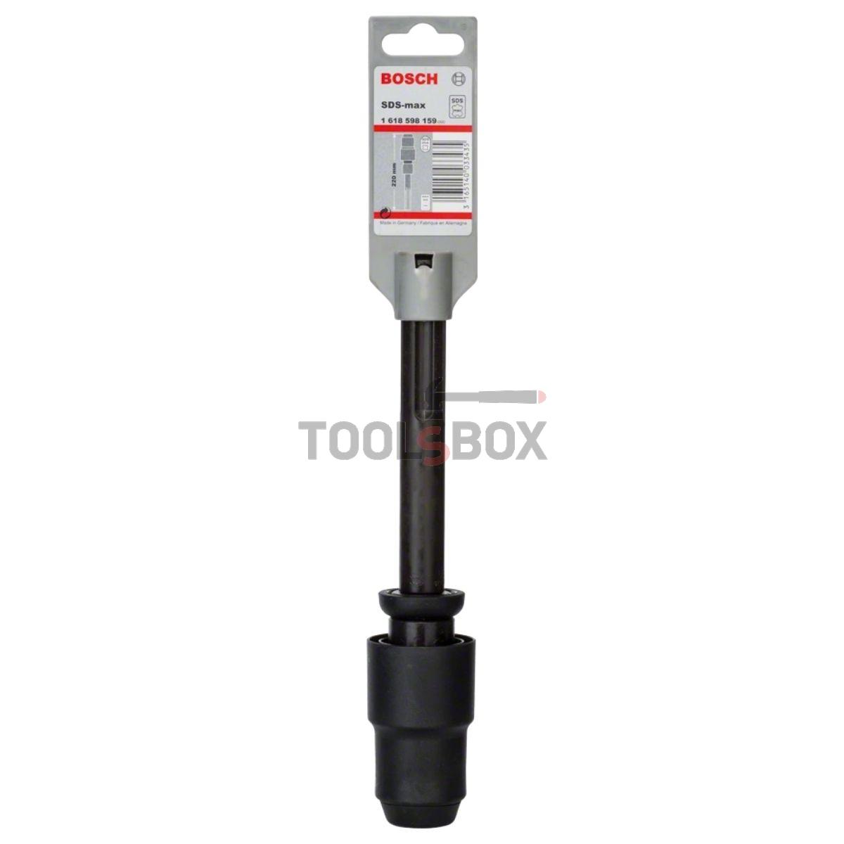 Адаптора 1618598159 на BOSCH за перфоратор осигурява преход от SDS max опашка към SDS plus свредла. Преходника е подходящ за бърза работа с различни размери пробивни и монтажни инструменти. Самозаключващ се патронник с до 30 % по-производителен при подменяне на свредлата. Има компактни размери – удобен за транспортиране. Той е от серията Professional на BOSCH.
