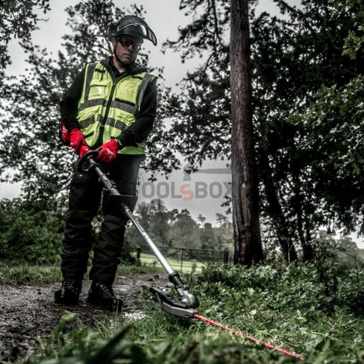 Приставката за ножица Milwaukee M18FOPH-HTA може да реже клони и храсти с диаметър до 25 мм. Острието от 508 мм реже повече материал с едно преминаване, което увеличава обхвата и производителността. Шарнирната глава предлага 12 позиции от 0° до 270° за най-удобното оформяне на ъглите на потребителя и лесно подрязване на горната част на високи плетове. Защитата на върха на острието предпазва остриетата от контакт с твърди предмети като огради и стени. Капакът на острието покрива изцяло комплекта остриета за съхранение и транспорт. Подходящ за използване с удължител от 91 см за максимален обхват. Основният модул е съвместим с всички приставки на Milwaukee.