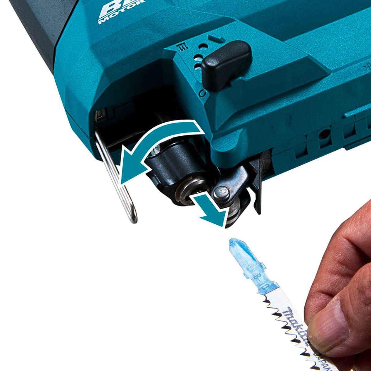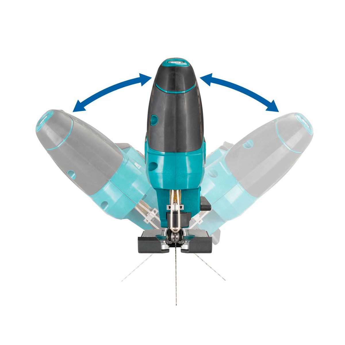 Прободен трион Makita DJV184RFJ е с високоефективен безчетков двигател, който не се нуждае от поддръжка. Зегето е със система за плавен старт и „Soft no load“ намалява скоростта на мотора при празен ход, което осигурява удобство и контрол над инструмента. Разполага с удобен пусков ключ, който спомага за намаляване на умората на пръстите при продължителна работа с инструмента. Възможността за смяна на ножа без допълнителни инструменти и спирачка правят работата много по-бърза и лесна. Режим право рязане и 3 режима на махално рязане.