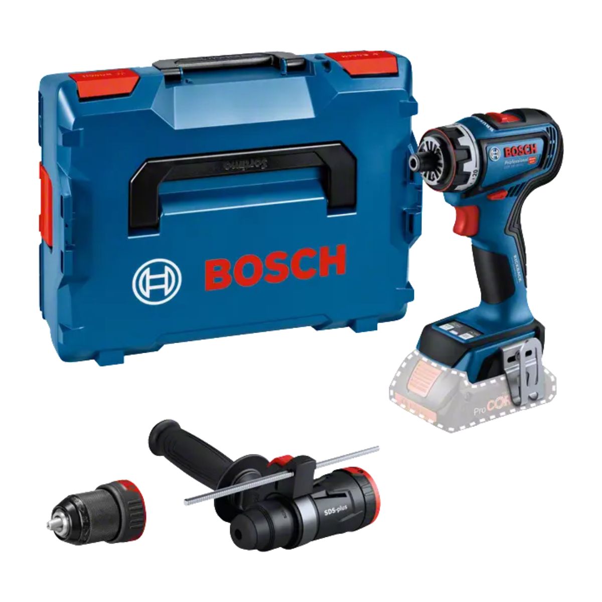 Професионален акумулаторен винтоверт Bosch GSR 18V-90 FC Professional е част от Bosch Professional FlexiClick System, предлагайки гъвкавост и подготвеност за различни предизвикателства на работната площадка. Този инструмент има различни приставки, които могат да се използват в различни ситуации. Ексцентриковата приставка е предназначена за работа близо до ръбовете и стените, като предоставя по-голяма маневреност и достъпност. Приставката за прав ъгъл трансформира винтовертата в ъглова бормашина, позволявайки ви да сверявате и пробивате в труднодостъпни места. И двете приставки могат да се фиксират в 16 различни положения под ъгъл от 360°, без да бъдат сваляни от инструмента, което улеснява настройката и осигурява гъвкавост при работа. С поставянето на уникалната перфораторна приставка GFA 18-H инструментът се превръща в пълноценен перфоратор SDS plus, който е подходящ за ударно пробиване в бетон с диаметър до 10 мм. С дължина на главата само 136 мм и максимален въртящ момент от 64 Nm, този инструмент е компактен и мощен, което го прави идеален за професионална работа. Bosch Professional FlexiClick System предоставя отлично оборудване, което ви позволява да се справите с разнообразни задачи на работното място.