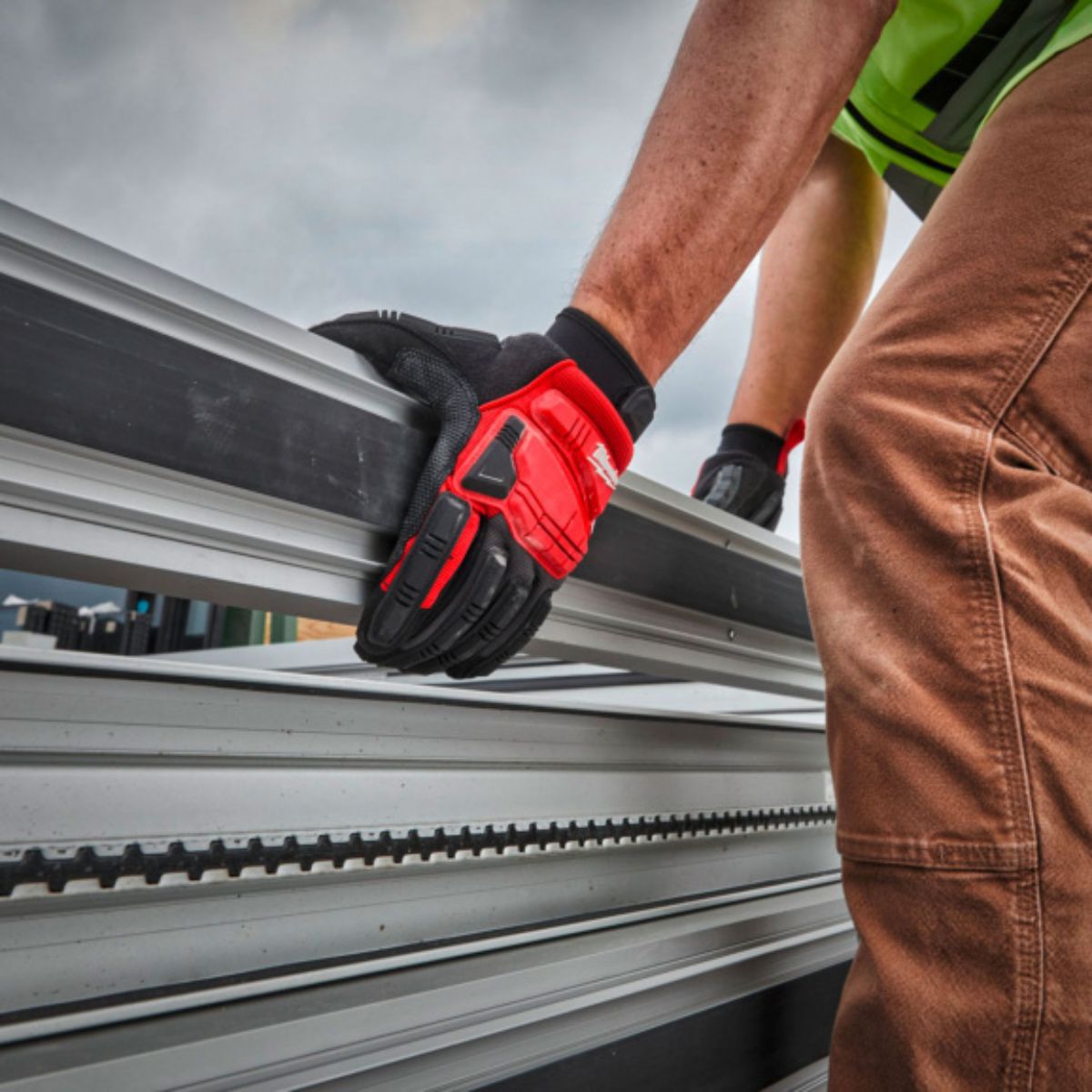 Противоударни ръкавици Milwaukee 4932471910 са високоустойчиви и здрави, подходящи при работа с машини и тежки строителни материали в индустриалната зона. Изработни от „TPR- Thermo Plastic Rubber“ термо-пластична гума на гърба на дланта и пръстите, който помага за предотвратяване на наранявания на гърба на ръката. Дланта е с допълнителна подплата, за да намали вибрациите от машините и за омекотявяане на ударите. Разполага с лепенка с велкро за пасване идеално на ръката на потрбителя, както и с ,,ухо“ за издърпване. Европейски сертифициран за защита срещу порязване, включително изпитване на удар: EN420 и EN388:2016 (2121XP). Дизайна на ръкавиците позволяват безпроблемна работа с мокри и мазни повърхности.