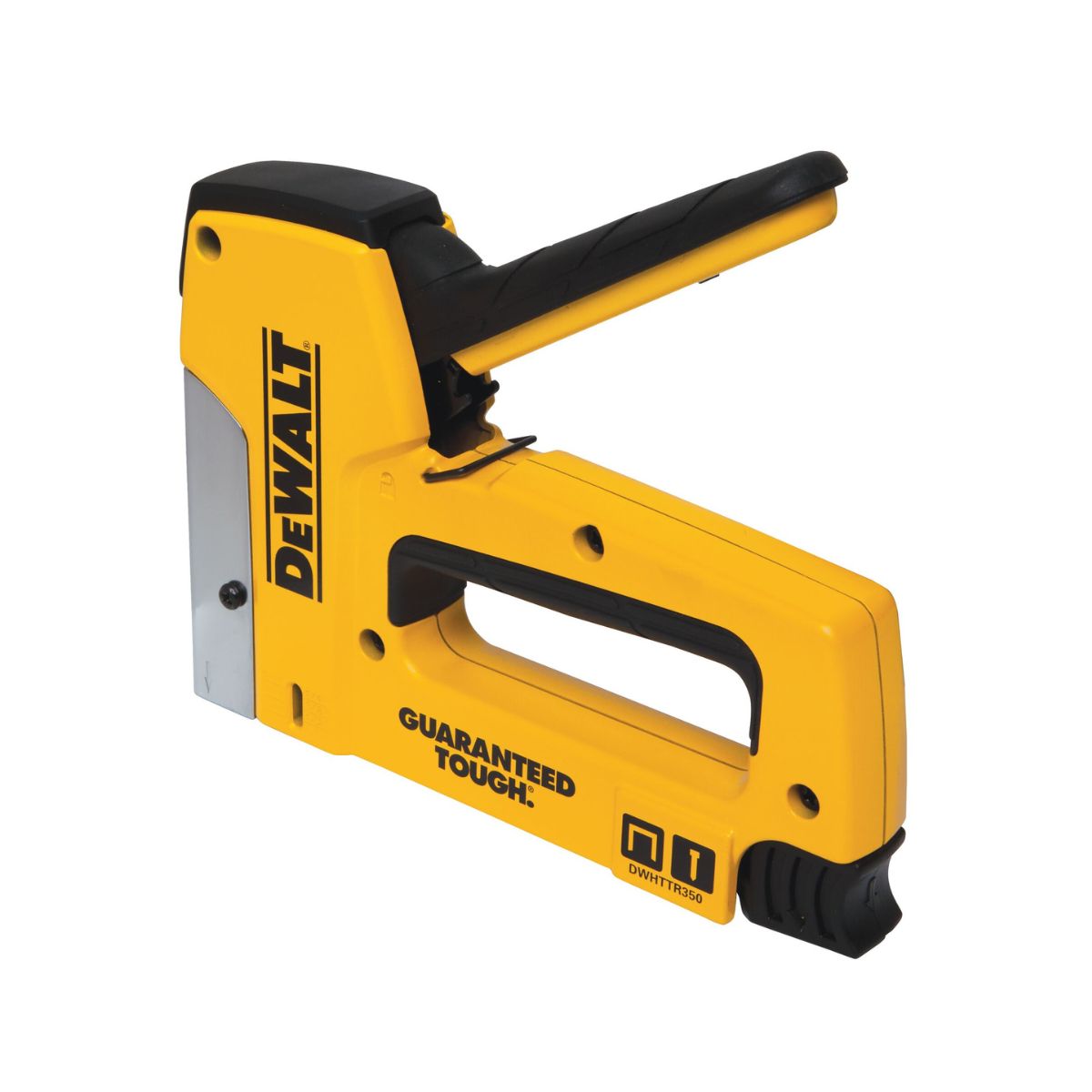 Ръчен такер DeWALT DWHTTR350-0 е изключително удобен инструмент за закрепване на различни материали. Способността му да работи с различни размери скоби и пирони го прави много универсален. Здравият алуминиев корпус осигурява издръжливост и лекота при работа, а механизмът AntiJam гарантира непрекъсната и гладка работа.
