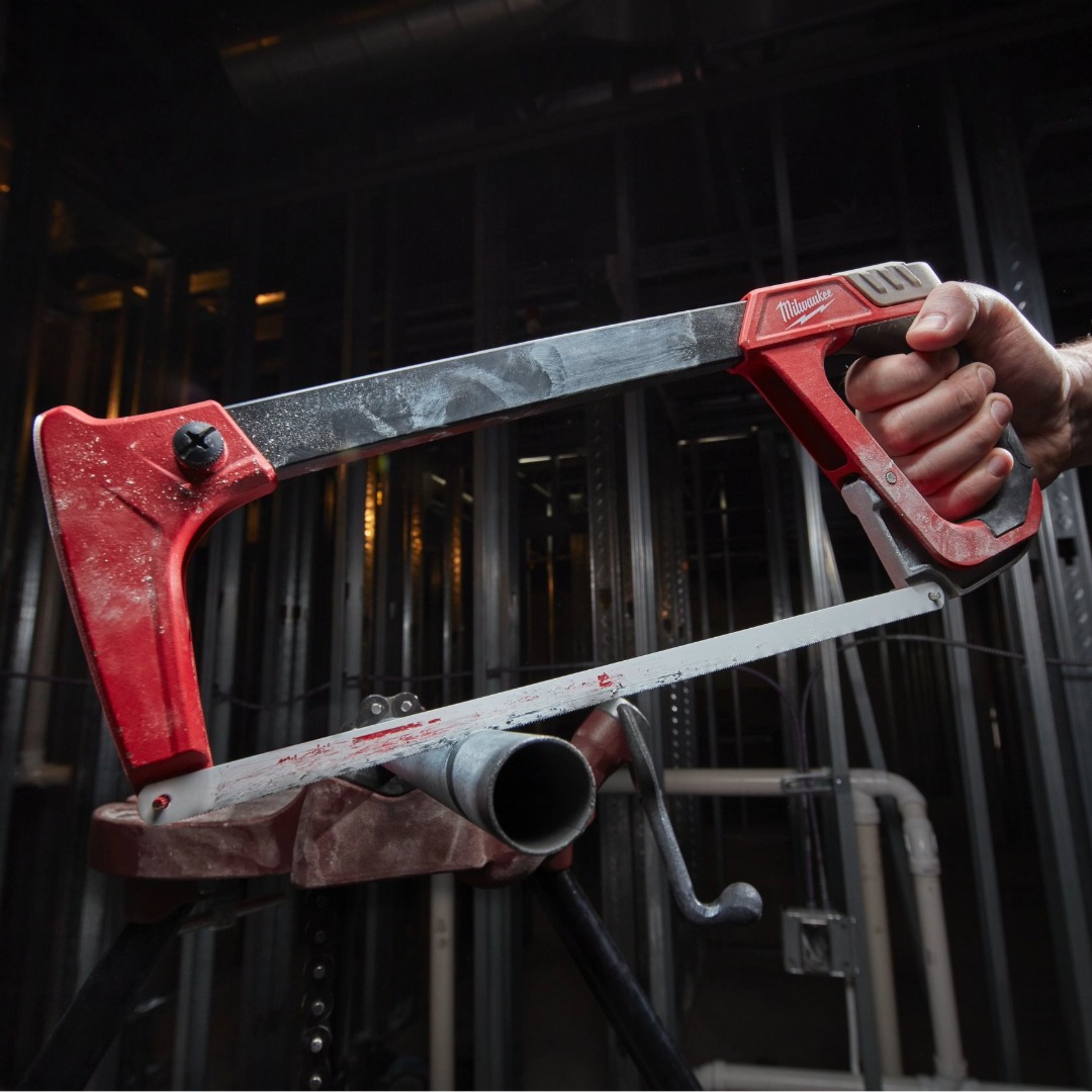 Ръчна ножовка с обтягане Milwaukee 48220050 е проектирана за професионална употреба, където се изискват висока издръжливост, точност и комфорт при рязане. Подсилената метална рамка осигурява изключителна здравина и е до 5 пъти по-издръжлива в сравнение с конкурентни модели, което я прави подходяща за интензивна работа на строителната площадка или в работилницата. Ножовката поддържа до 4 пъти по-високо обтягане на острието, което гарантира стабилност и прецизен, прав разрез без вибрации. Ергономичната дръжка е проектирана за удобен и сигурен захват, намалявайки умората при продължителна употреба. Смяната на острието е бърза и лесна благодарение на копчето с висок лост, което позволява ефективна работа и минимално време за подготовка.