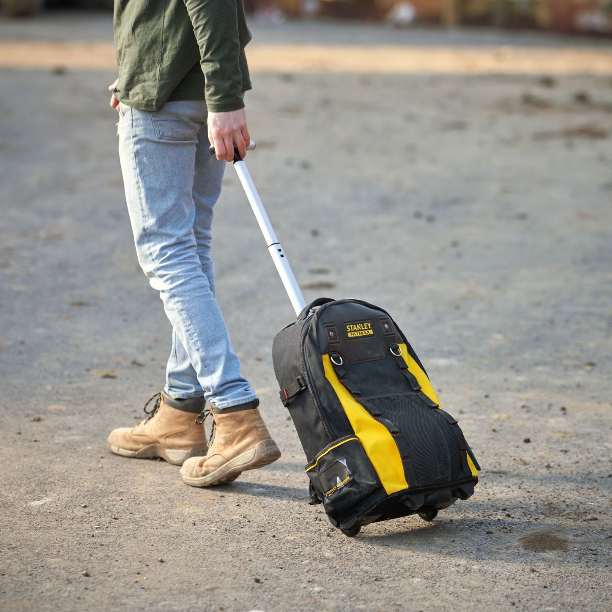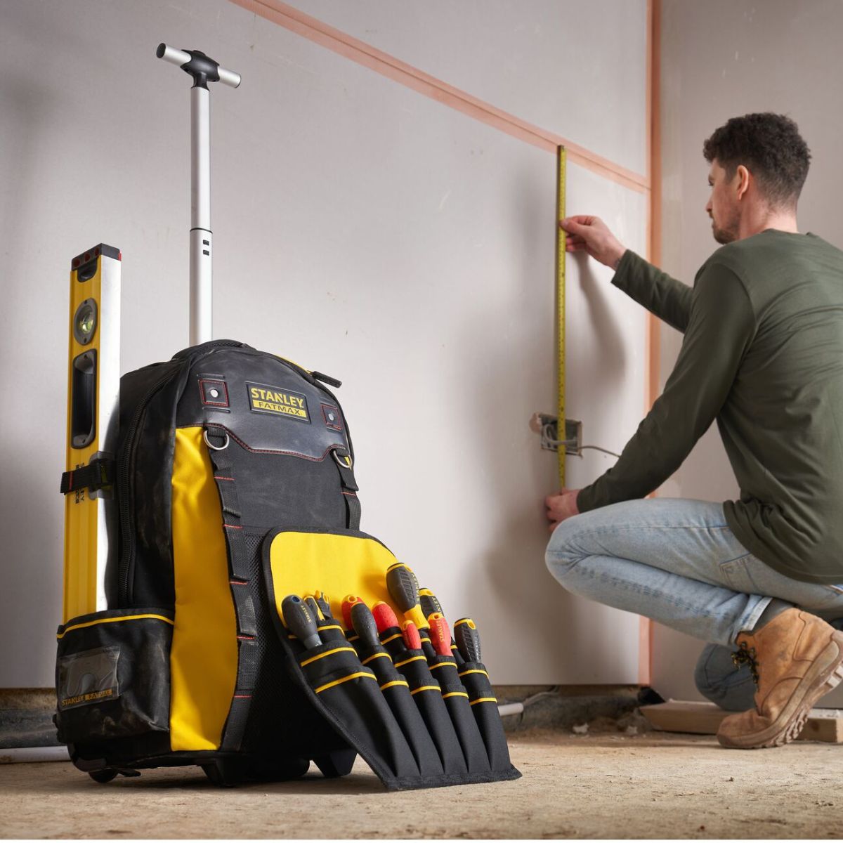 Раница за инструменти с колела Stanley 1-79-215 е идеалното решение за професионалисти и хоби майстори, които търсят практичност, организация и удобство при пренасянето на своите инструменти. Снабдена с дизайн с цип с широко отваряне, раницата осигурява бърз и лесен достъп до инструментите си. Също така, тя разполага с твърда водоустойчива основа, която предпазва съдържанието от мръсотия и влага, гарантирайки дълготрайна защита на инструментите. Раницата може да се носи удобно с двете подплатени презрамки за равномерно разпределение на товара върху раменете или да се дърпа на колела с телескопичната дръжка, особено удобна при по-тежки товари. Със своя подвижен органайзер за инструменти с дръжка за носене раницата предлага персонализирано организиране на малки инструменти, като разполага и с множество джобове, включително подплатено отделение за лаптоп или таблет и отделно отделение с цип за лични вещи. Дълги инструменти, като например нивелир, могат да се носят удобно в специалната примка за инструменти. Изработена от здрав плат с плътност 600 дение, тази раница предлага издръжливост и надеждност, гарантирайки, че вашите инструменти са защитени и организирани по най-добрия начин.