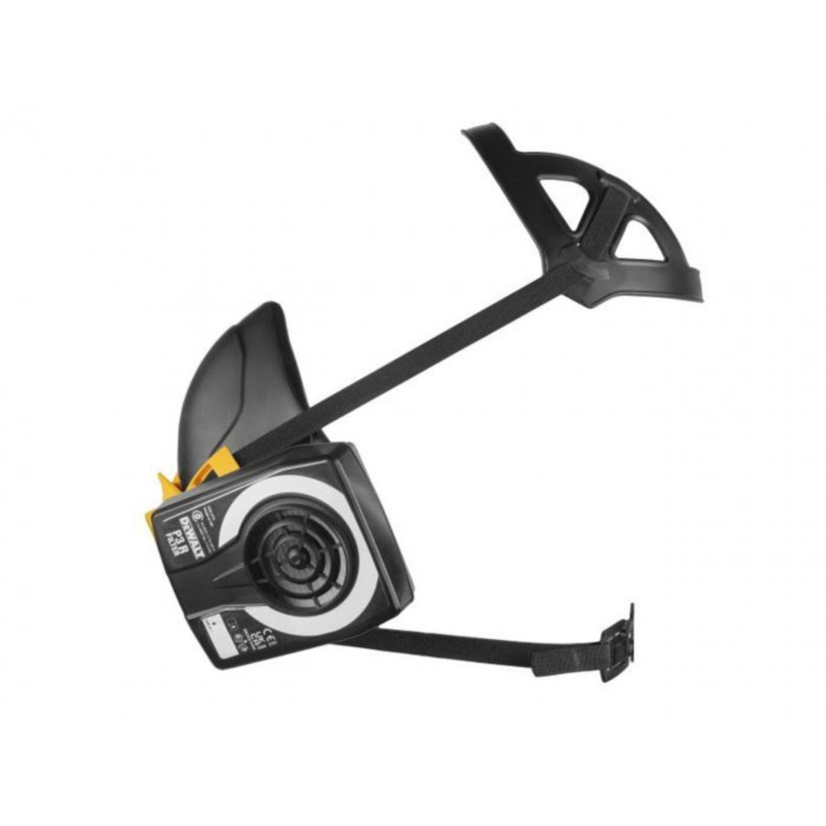 Респираторна маска за половин лице DeWalt е съвместима с P3 филтър, за да предпази работника от финни чатици прах, MDF трици и всякакъв индустриален и строителен прах, химикали и течности. P3 филтрите осигуряват до 99,999% филтриране на частици във въздуха до 0,3 микрона и повече. С 2 равномерно разпределени филтъра от двете страни, които не пречат на зрението на оператора. Изчистените материали, без латекс от които е изградена маската, допринася за комфорта при дълги часове на работа без дразнене на кожата. Разполага и със защитен фактор от APF20, който може да се използва с концентрации на замърсители до 20 пъти над границата на експозиция на работното място (WEL). Еластичните ленти за главата са напълно регулируеми, за да приляга плътно маската за по-голям комфорт. С възможност за сваляне на маската, без да се сваля зашитата от главата, благодарение на коланът с двоен режим. Доставя се с 2бр филтър P3.