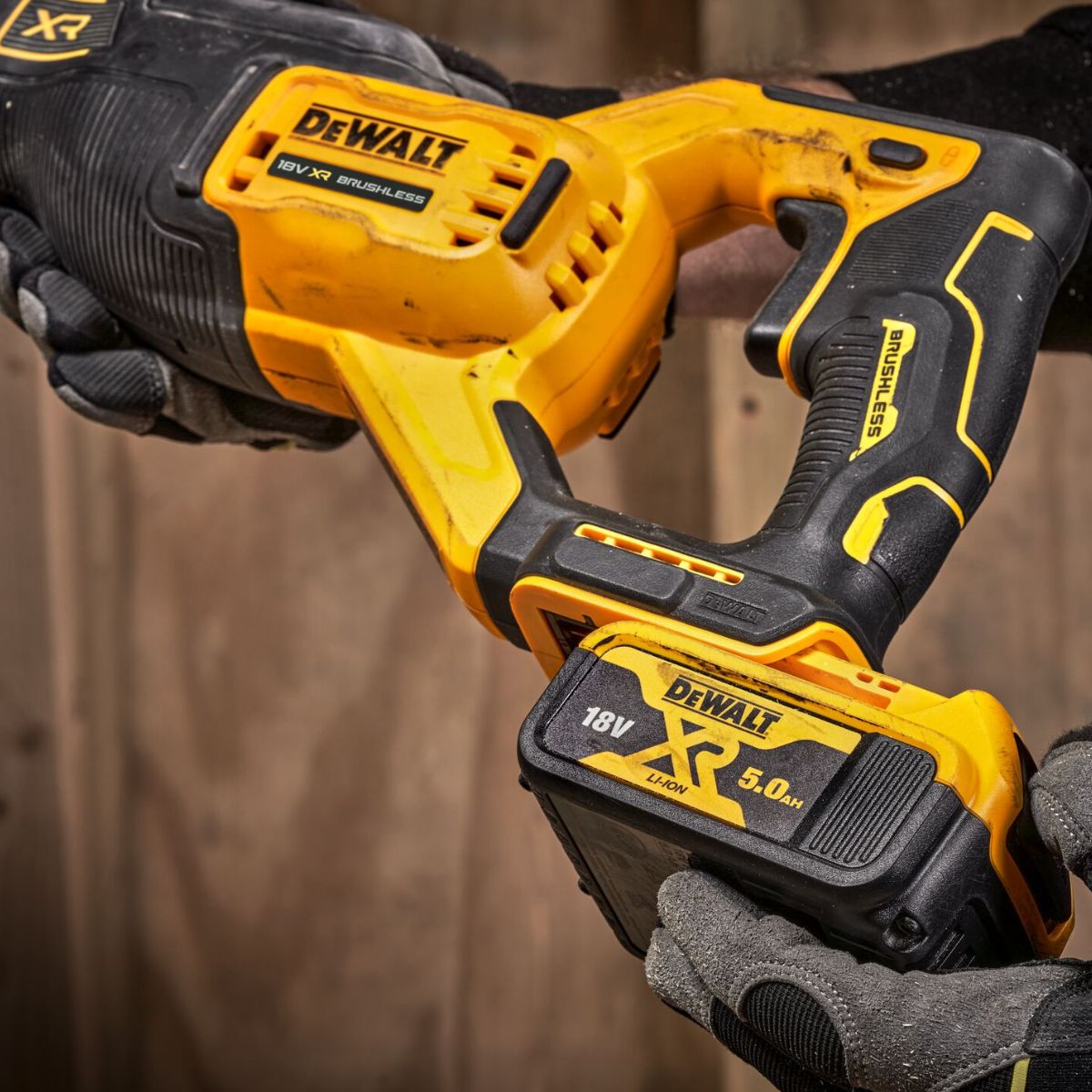 Саблен трион DeWALT DCS382N е мощна акумулаторна ножовка, предназначена за разнообразно рязане при строителни и ремонтни задачи. С надеждно електронно управление на скоростта, бързо заключване и електронна спирачка, тази ножовка осигурява както комфорт, така и безопасност по време на работа. Възможността за смяна на ножа без инструменти улеснява поддръжката и настройката на инструмента. Отворената регулируема основа на ножовката предоставя стабилност и позволява на потребителя да има добра видимост на линията на рязане. LED работното осветление подобрява видимостта в зоната на работа, особено при работа в условия с намалена осветеност. DEWALT DCS382N се захранва с 18V батерия, която осигурява достатъчно мощност. Ножовката достига до 3200 хода в минута, като максималната дълбочина на рязане е 300 мм.