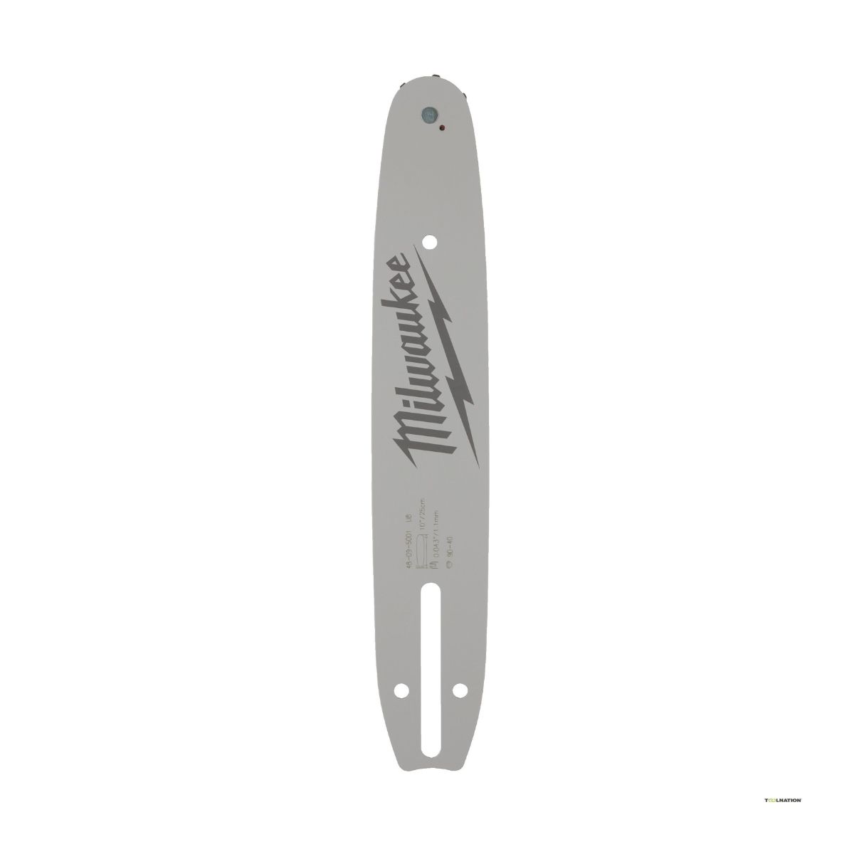 Шина за приставка за тример Milwaukee 4932480170 е висококачествен инструмент за използване с приставката на Milwaukee M18 FOPH-CSA, която е подходяща за рязане на високи храсти и клони. Шината е изработена от качествени материали, предотвратяващи корозия и позволявайки лесното закрепване на веригата.