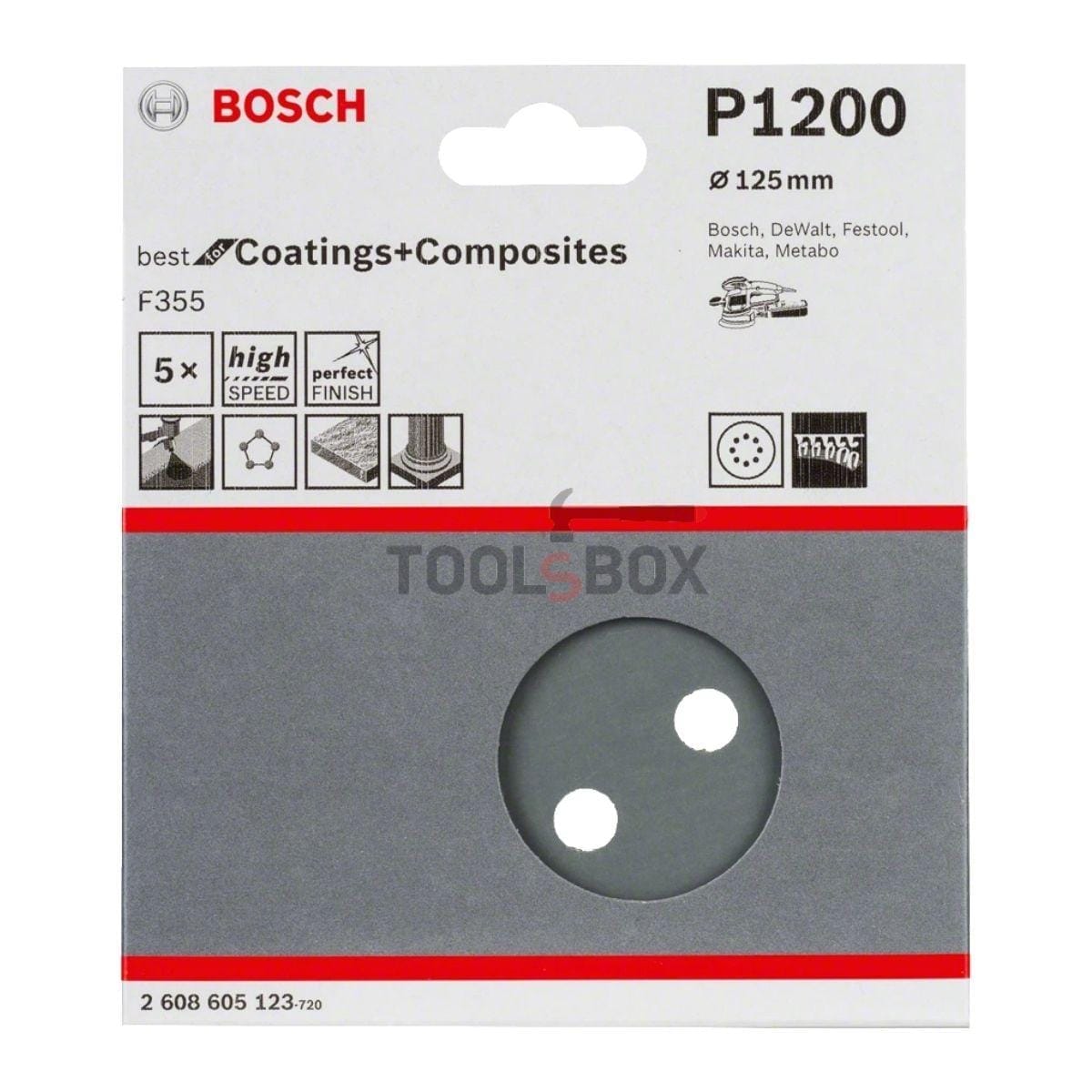 Шкурка BOSCH 2608605123, F355 125мм/1200, 8 отвора, 5 броя