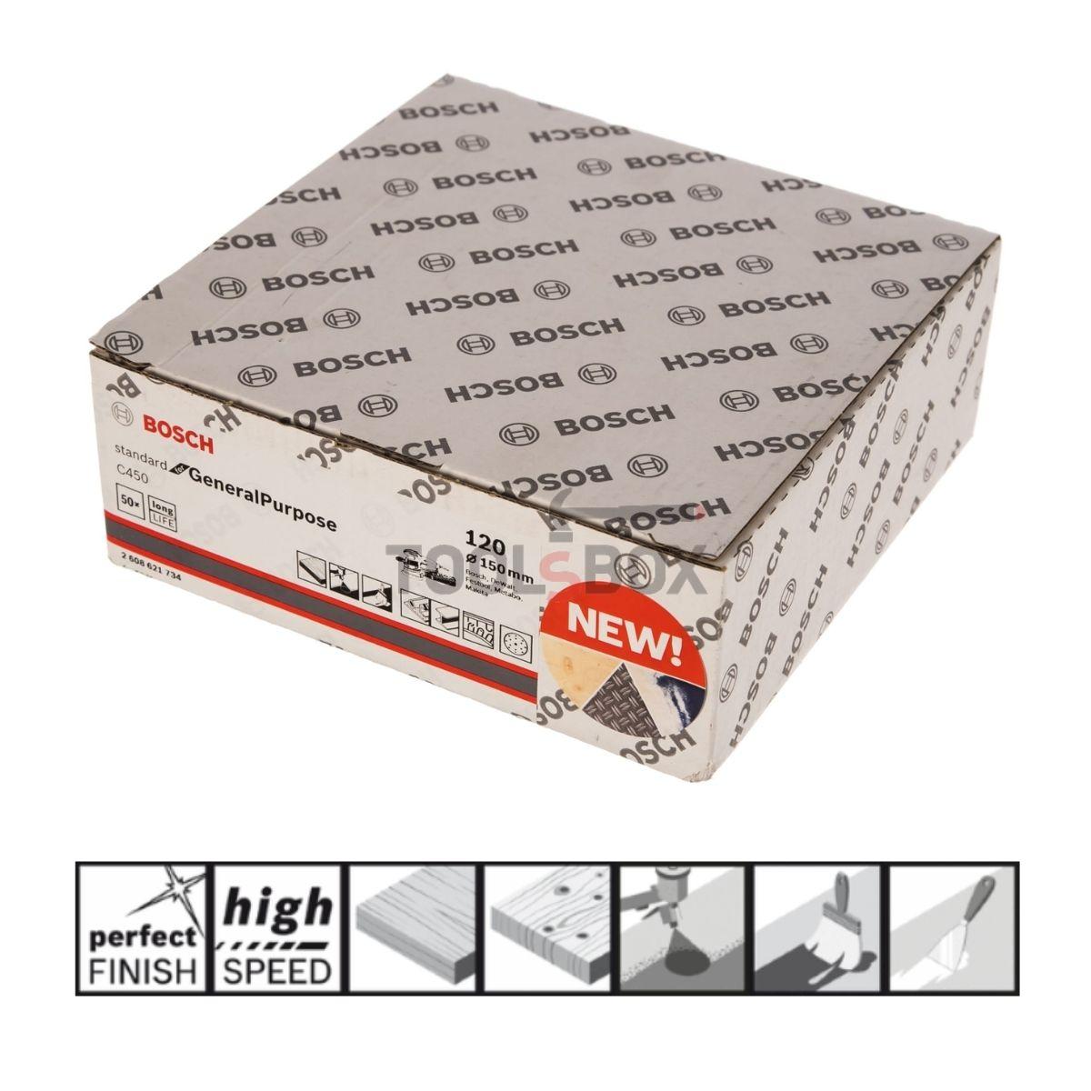 Шкурка BOSCH 2608621734, C450 150мм/120, 15 отвора, 50 броя