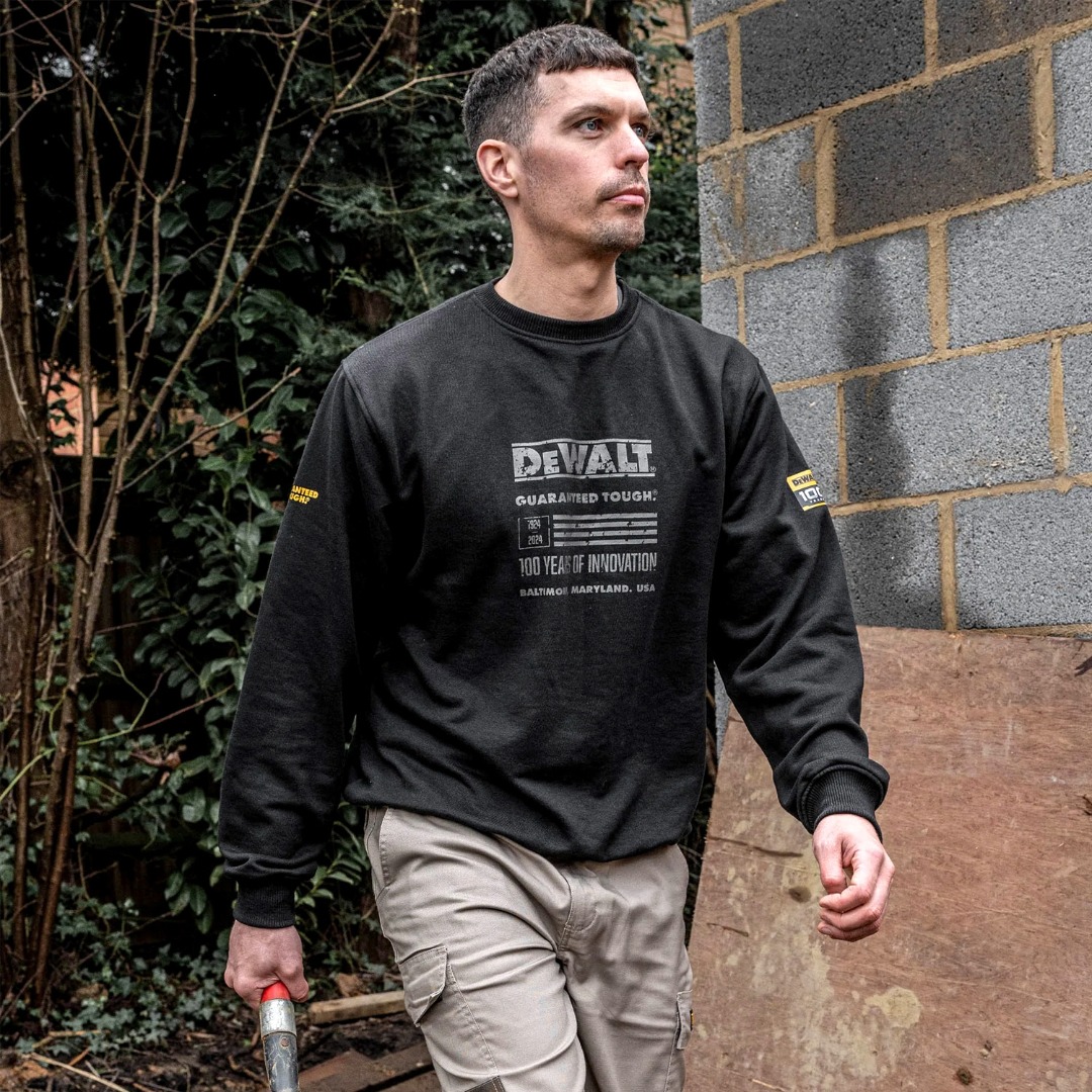 Суитшърт DEWALT DWC237-001 е изработен от висококачествена материя – 65% полиестер и 35% памук, с плътност 330 GSM, която осигурява топлина и издръжливост. Оребрените маншети и подгъв гарантират удобно прилепване и допълнителен комфорт при носене. Този специален модел е перфектен избор за ежедневна употреба и за работа на открито, като същевременно носи духа на 100-годишната история и качество на DEWALT.