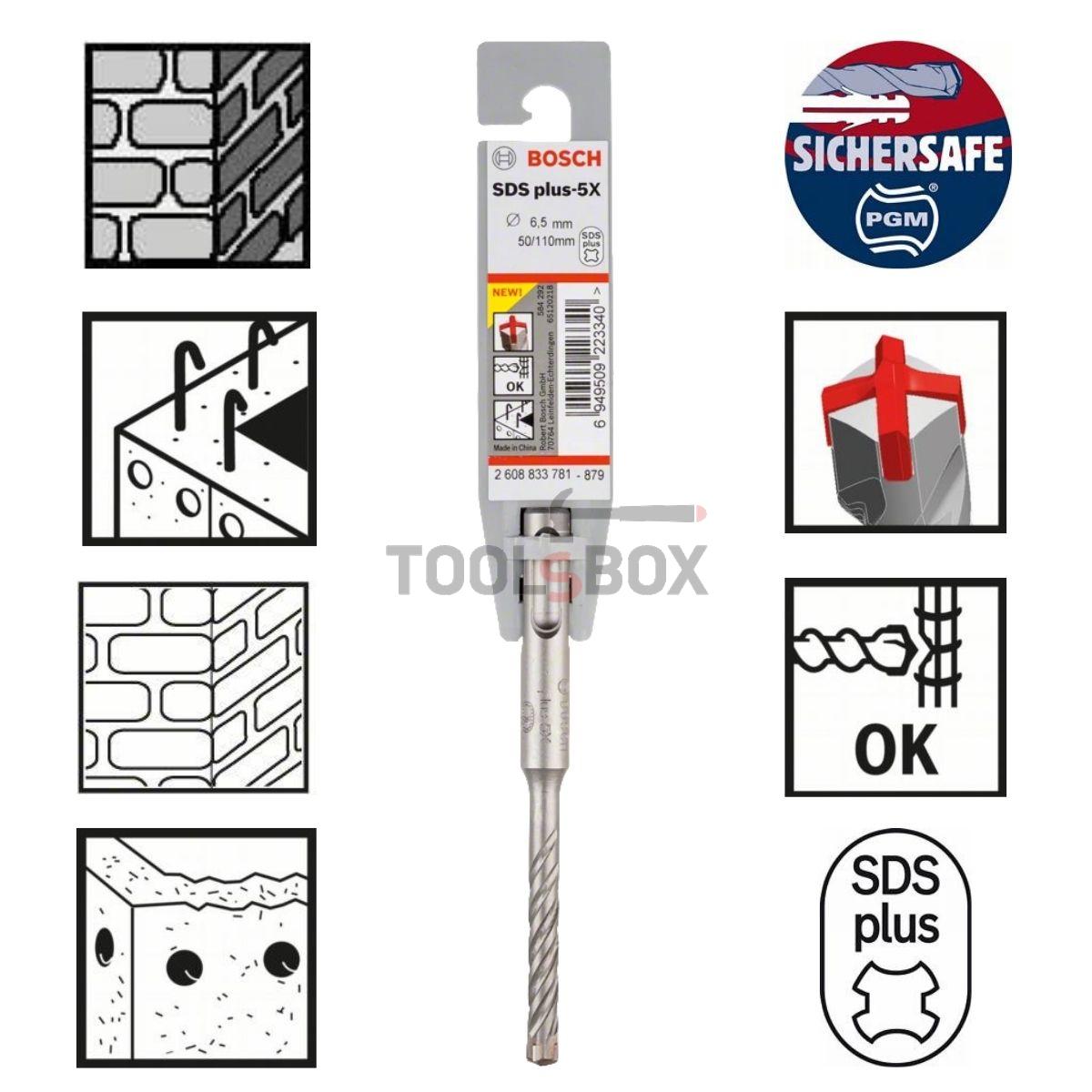 Свредло за бетон BOSCH SDS plus-5X,  6.5 x 50 х 110 мм