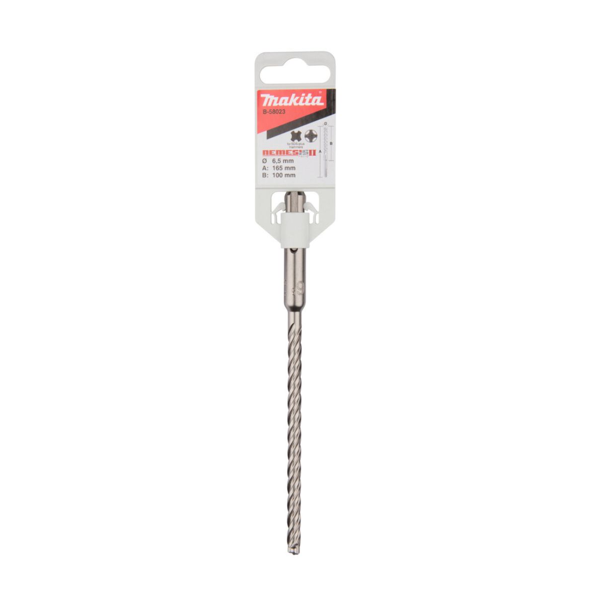 Свредло за бетон Nemesis || Makita B-58023 е част от серията свредла с SDS-plus опашка Nemesis, които преодоляват проблемите при пробиването в бетон със стоманена армировка. С тези свредла няма риск от счупване на пластината, а пробиването става с лекота. Те са първокласни свредла, предназначени за всеки, който се нуждае от пробиване в армиран бетон или естествен камък. Уникалната геометрия на главата с 4 режещи зъба на свредлото гарантира прецизност при направата на отвори. Серията Nemesis осигурява до 50% повече пробити отвори в сравнение с обикновените ударни свредла.