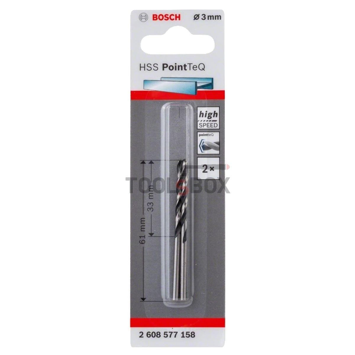 Свредло за метал BOSCH PointTec HSS 3 х 33 мм, 2бр.