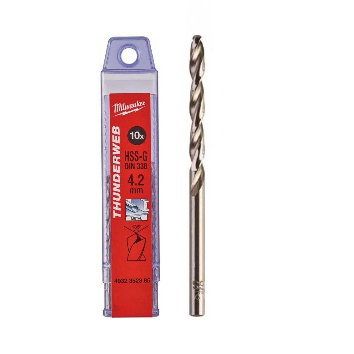 Свредло за метал Milwaukee HSS-G Thunderweb се характеризира с конусовидна сърцевина на свредлото, която се увеличава дебелината към задната част на свредлото. Стандартните свредла имат еднаква дебелина по цялата дължина. Дори в най-тясната точка ядрото на Thunderweb е по-дебело от стандартните свредла. Параболично напречно сечение на пробивната сърцевина се характеризира с голяма дебелина на сърцевината и страхотна вътрешна сила и издръжливост. Каналът на Thunderweb бързо изхвърля горещи чипове. Той разсейва топлината по-добре и по този начин увеличава времето за използване. Свредлата имат 135° точка на разделяне, което помага за прецизно стартиране и предотвратяване на плъзгането по повърхността на материала. Полираната повърхност намалява триенето.