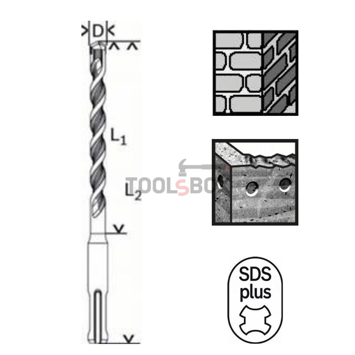 Свредлото BOSCH SDS plus-1 предлага високоефективно пробиване в стоманобетон. Плочата от волфрамов карбид с 2 режещи ръба прави свредлото изключително здраво. 2-каналният U-образен дизайн осигурява ефективно премахване на праха и стандартен експлоатационен живот.