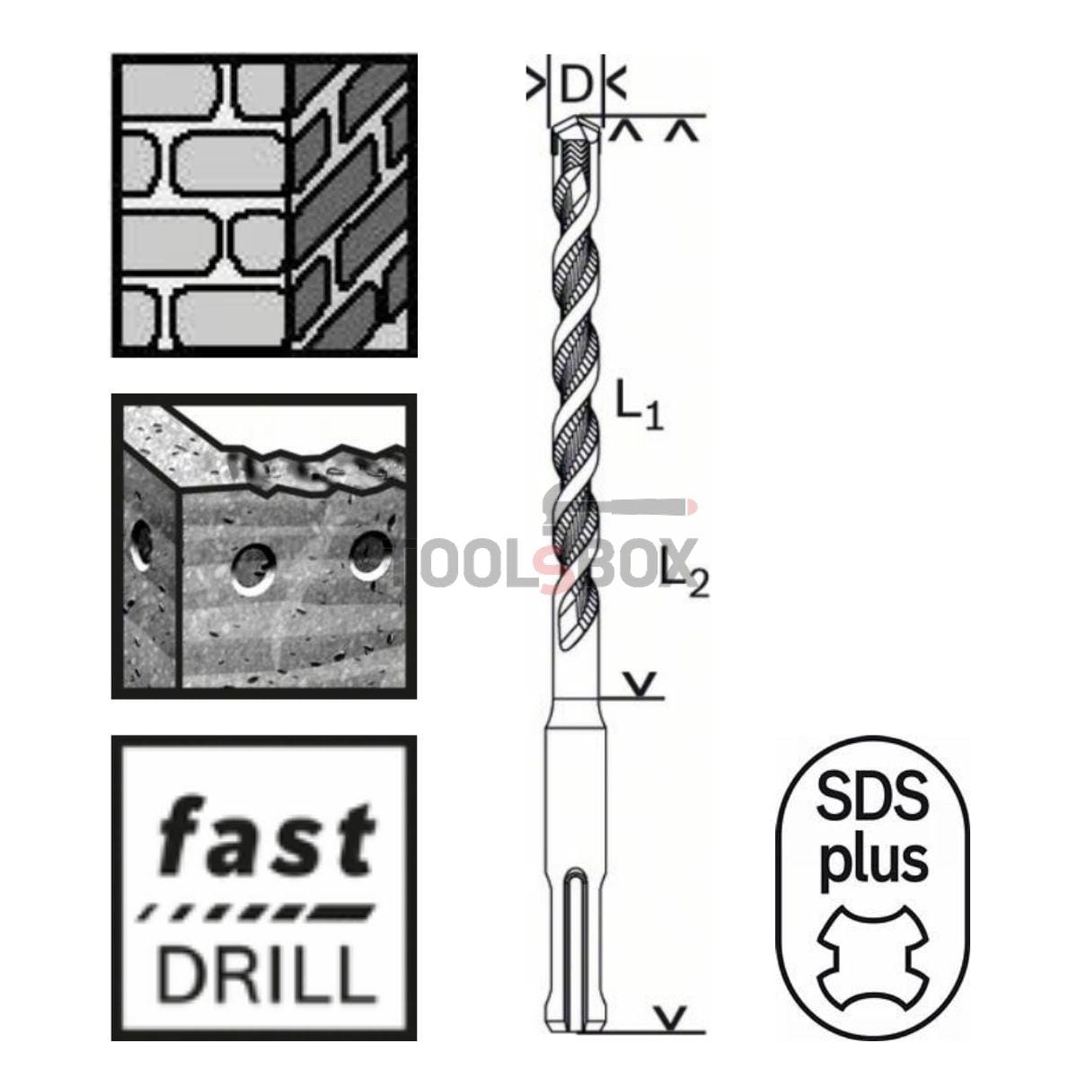 Свредлото BOSCH SDS plus-1 предлага високоефективно пробиване в стоманобетон. Плочата от волфрамов карбид с 2 режещи ръба прави свредлото изключително здраво. 2-каналният U-образен дизайн осигурява ефективно премахване на праха и стандартен експлоатационен живот.