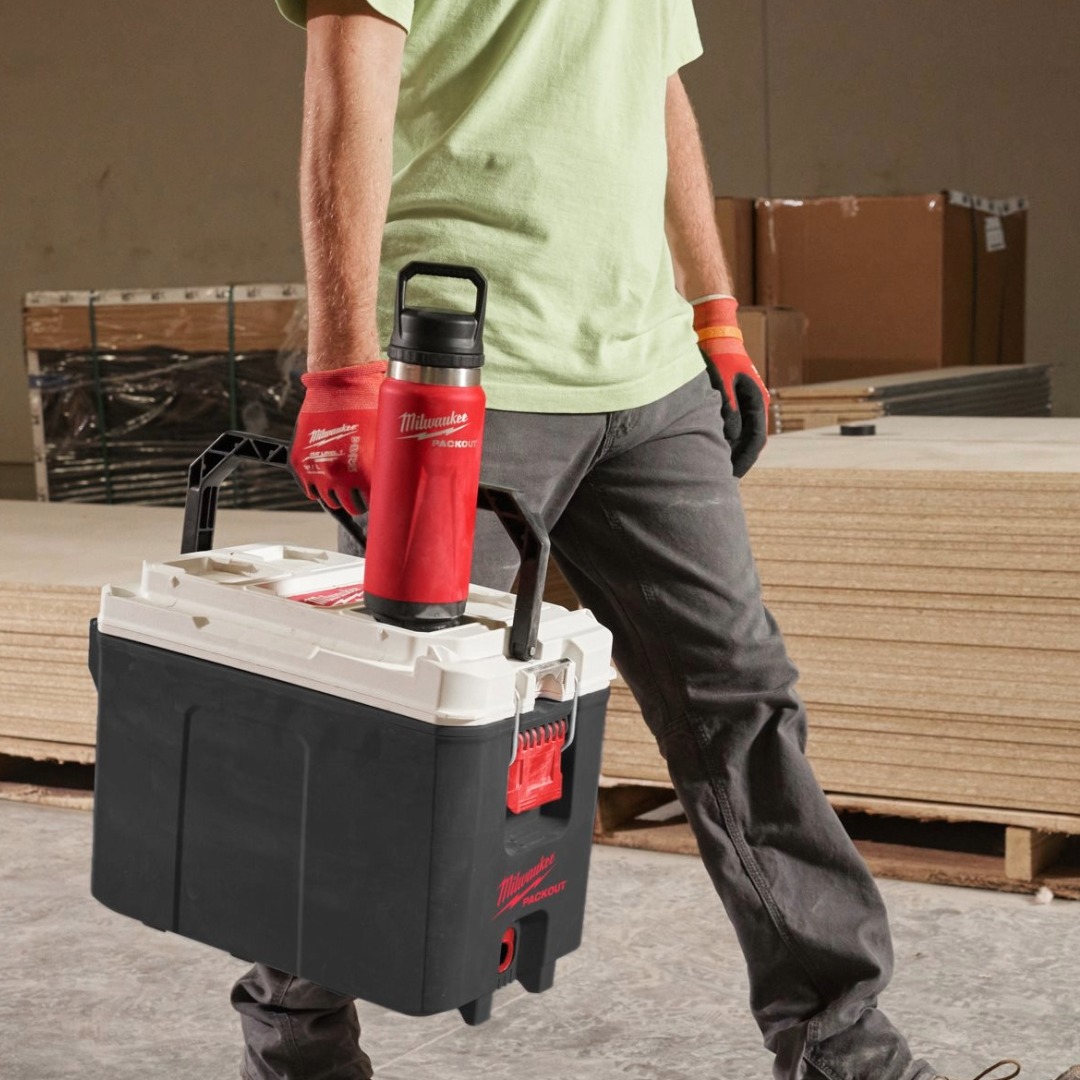 Термос Milwaukee 4932493991 е перфектното решение за задържане на температурата на вашите напитки през целия ден. С вместимост 532 мл, двойна стена и вакуумна изолация, тя ефективно поддържа съдържанието топло или студено за дълъг период. Бутилката е изработена от висококачествена неръждаема стомана, което гарантира здравина и дълъг експлоатационен живот при интензивна употреба. Капаците са напълно съвместими с всички бутилки и чаши от системата PACKOUT, а механизмът за свързване чрез завъртане и заключване позволява сигурно закрепване към PACKOUT модулите. Предлага се в характерния за марката червен цвят и е напълно интегрирана в модулната система Milwaukee PACKOUT.