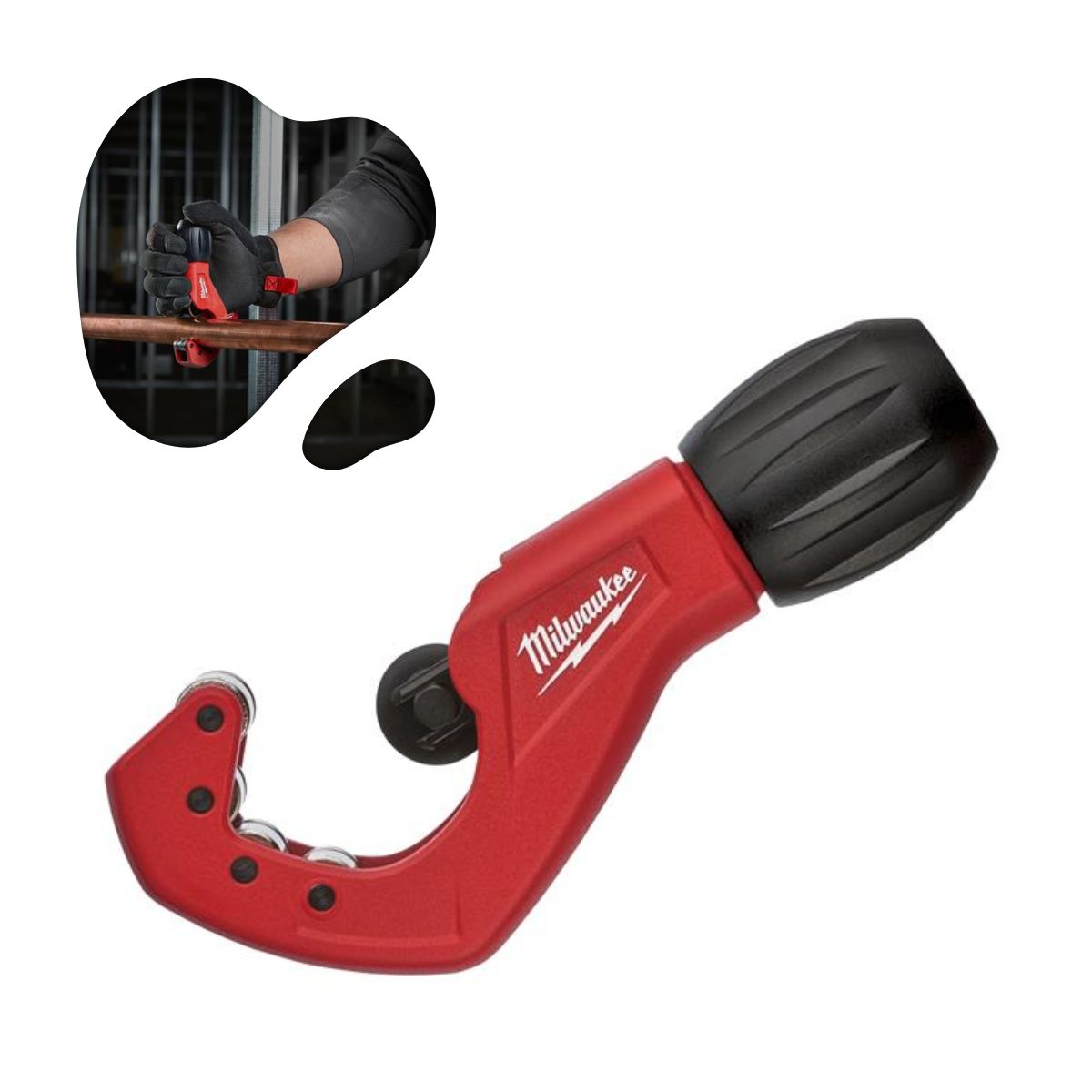 Тръборез Milwaukee 48229259 е подходящ за рязане на медни тръби с капацитет 3-28 мм, с постоянно въртене, проектиран за по-прави и чисти срезове. Дизайнът с 4 ролки осигурява точни срезове, с хромирани ролки за допълнителна издръжливост и разширена производителност, осигуряващи най-добрата в класа си защита от ръжда и имат плавен механизъм за регулиране. Вграденият райбер позволява бързо и лесно премахване на челюстите, а резервното колело е интегрирано в копчето.