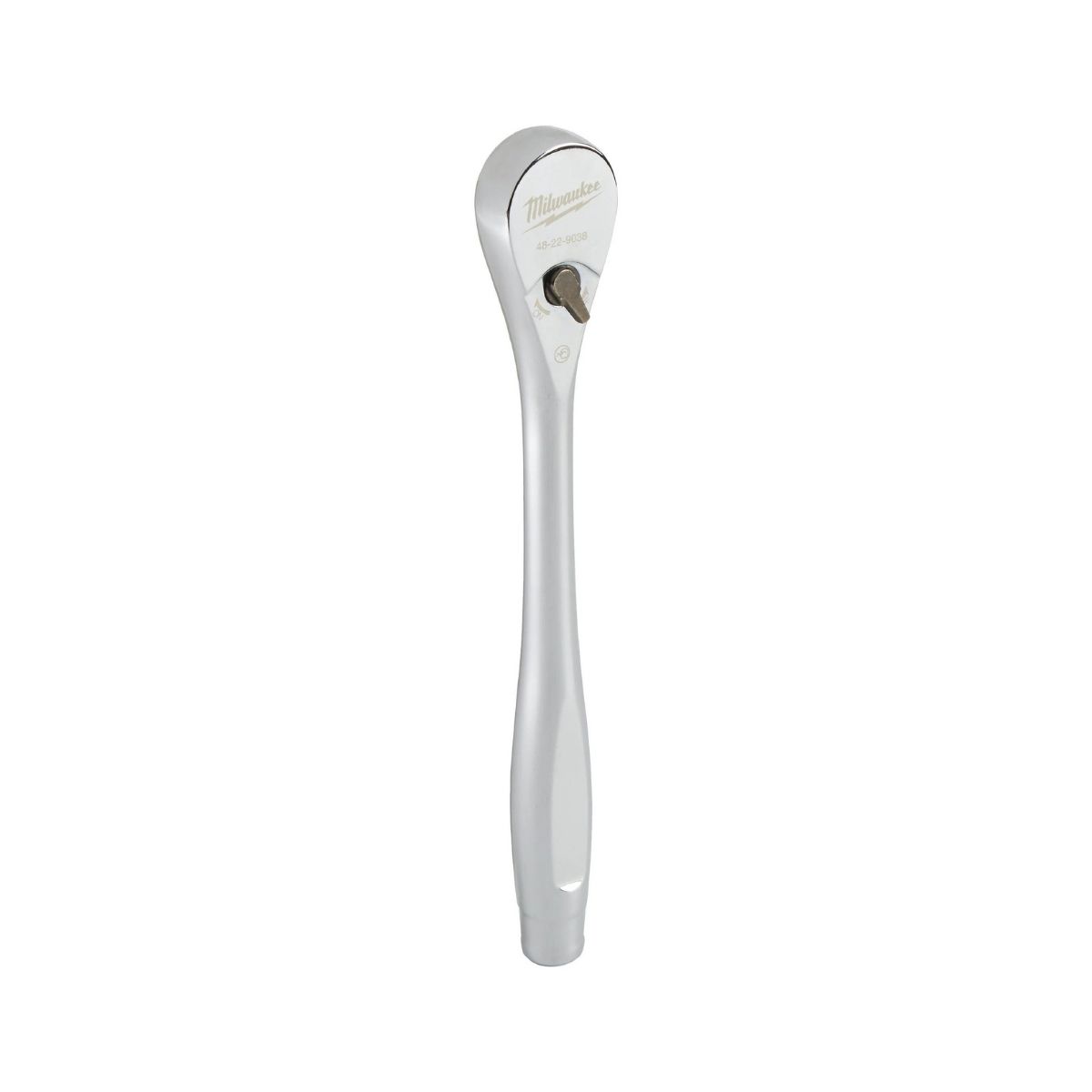 Tресчотка Milwaukee 48229038 представлява мощен инструмент, включващ 90 зъба и 4° дъгова люлка, идеален за работа в тесни и ограничени работни пространства. Тънката профилна глава и лоста за посока на изравняване ви осигуряват по-добър достъп до труднодостъпни места.