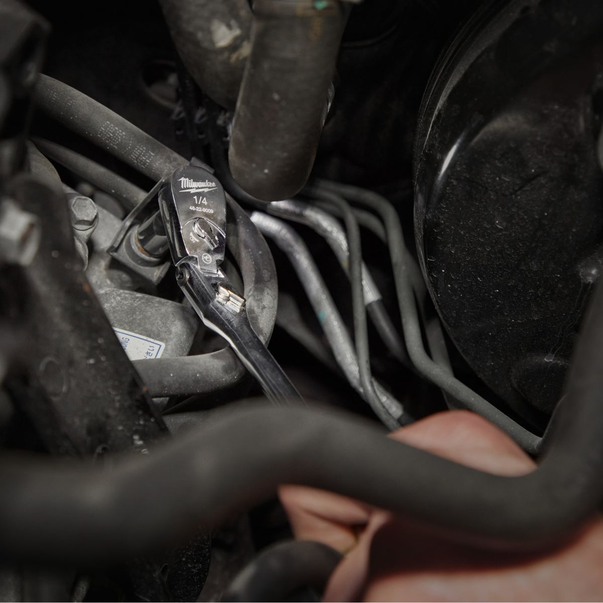 Tресчотка с подвижна глава Milwaukee 4932479649 представлява мощен инструмент, включващ 90 зъба и 4° дъгова люлка, идеален за работа в тесни и ограничени работни пространства. Разполага с универсална заключваща се гъвкава глава, която ви позволява да избирате между 7 различни позиции на заключване или свободно движещ режим. Това предоставя гъвкавост и контрол при работа в различни ситуации. Тънката профилна глава и лоста за посока на изравняване ви осигуряват по-добър достъп до труднодостъпни места.