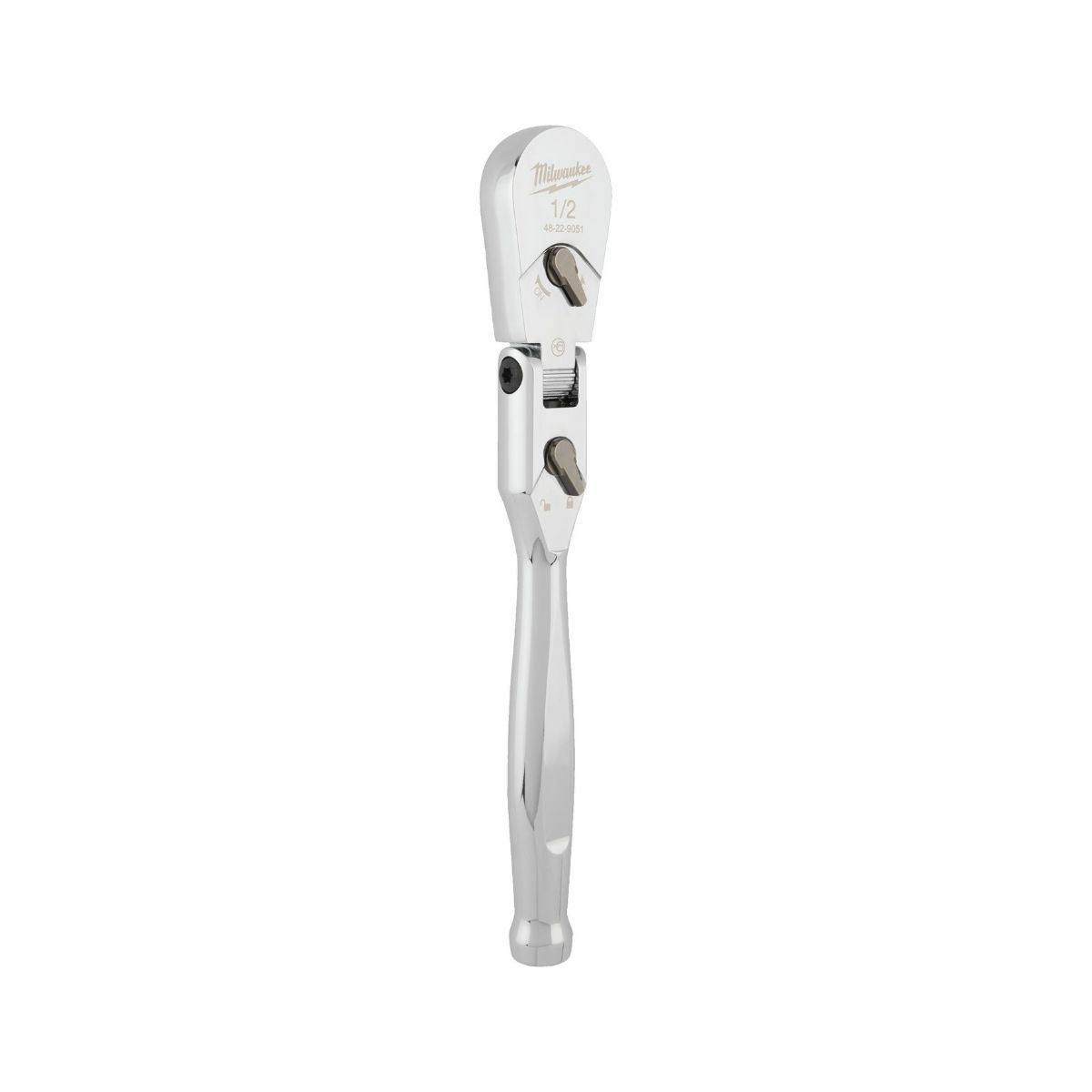 Tресчотка с подвижна глава Milwaukee 4932479655 представлява мощен инструмент, включващ 90 зъба и 4° дъгова люлка, идеален за работа в тесни и ограничени работни пространства. Разполага с универсална заключваща се гъвкава глава, която ви позволява да избирате между 11 различни позиции на заключване или свободно движещ режим. Това предоставя гъвкавост и контрол при работа в различни ситуации. Тънката профилна глава и лоста за посока на изравняване ви осигуряват по-добър достъп до труднодостъпни места.
