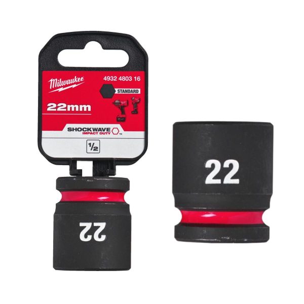 Ударна вложка 22 mm Milwaukee 4932480316 SHOCKWAVE ™ IMPACT DUTY е от висококачествена легирана стомана, която осигурява изключителна здравина и издръжливост. Предлага най-добро прилягане, благодарение на 6 точки за захващане и неплъзгащата се шестнадесетична геометрия, предотвратяваща закръгляването на гнездото и закопчалката. Лазерно гравирани маркировки на размера за лесна идентификация и не се износват. Дълбочината на стената е 22 мм, което осигурява свободно място за стърчащи болтове. Дизайн с двоен отвор и жлеб за аксесоари за сигурност.